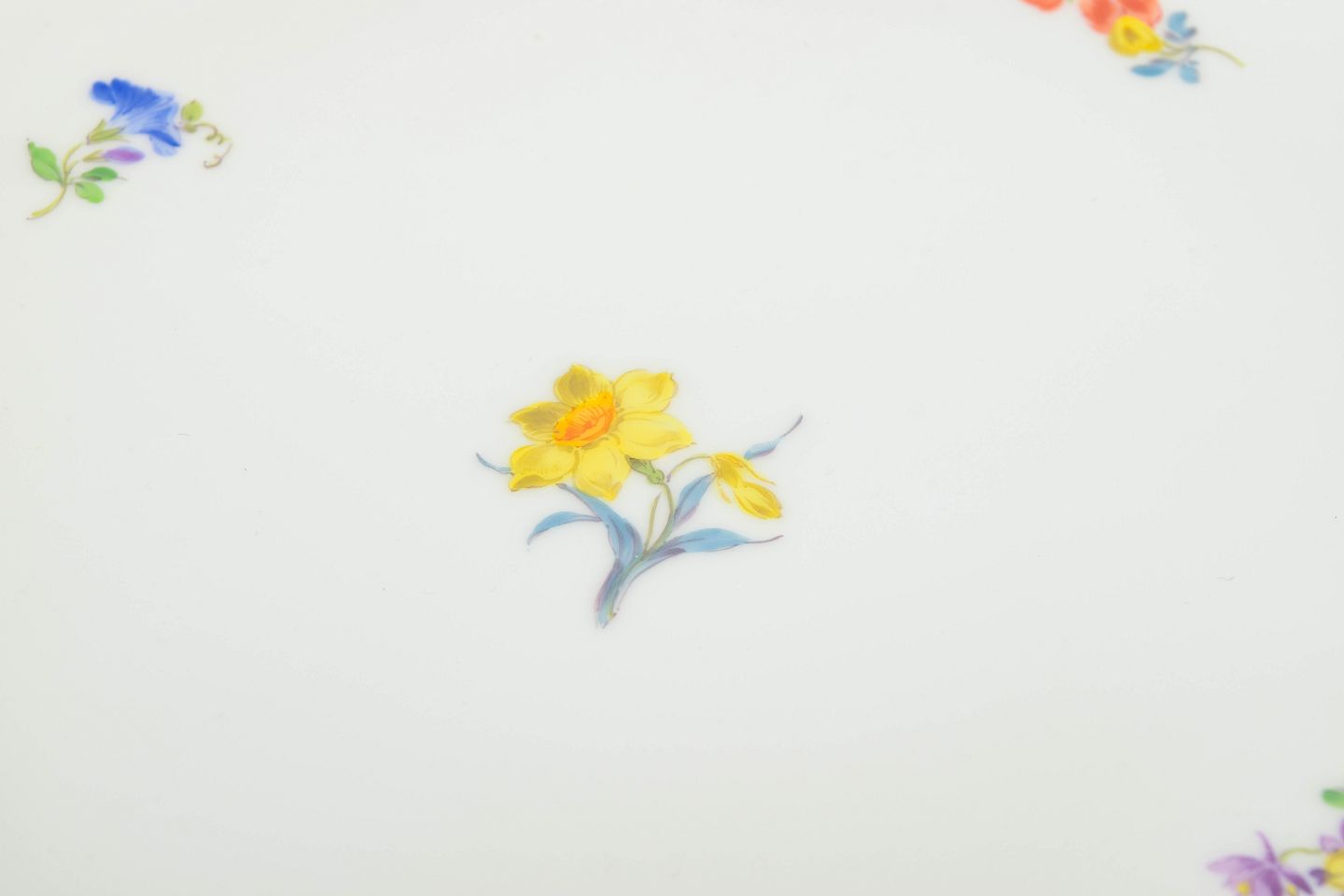 Meissen, stort fad med polykrom blomsterdekoration.
