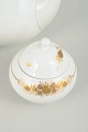 Elegant kaffesæt i porcelæn bestående af kaffekande, flødekande og sukkerskål med låg, dekoreret med det karakteristiske blomsterornament fra Romanze-serien. Den fine dekoration i gyldne nuancer fremstår med et romantisk og dekorativt udtryk, typisk for Wiinblads formsprog i 1970’erne.