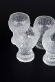 Small schnapps glasses from the Kekkerit series in clear glass with a distinctive textured surface and solid base, designed in the 1970s.