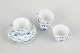 Fire kaffekopper med tilhørende underkopper i porcelæn med håndmalet dekoration i underglasurblå i det klassiske Musselmalet Riflet mønster. Model 1/80. Første og anden sortering.