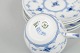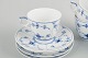 Royal Copenhagen Musselmalet Riflet, sæt af fire kaffekopper med underkopper.