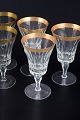 Elegant red wine glasses in cut crystal with 24 carat gold decoration along the rim, executed in a classic mid 20th century style.