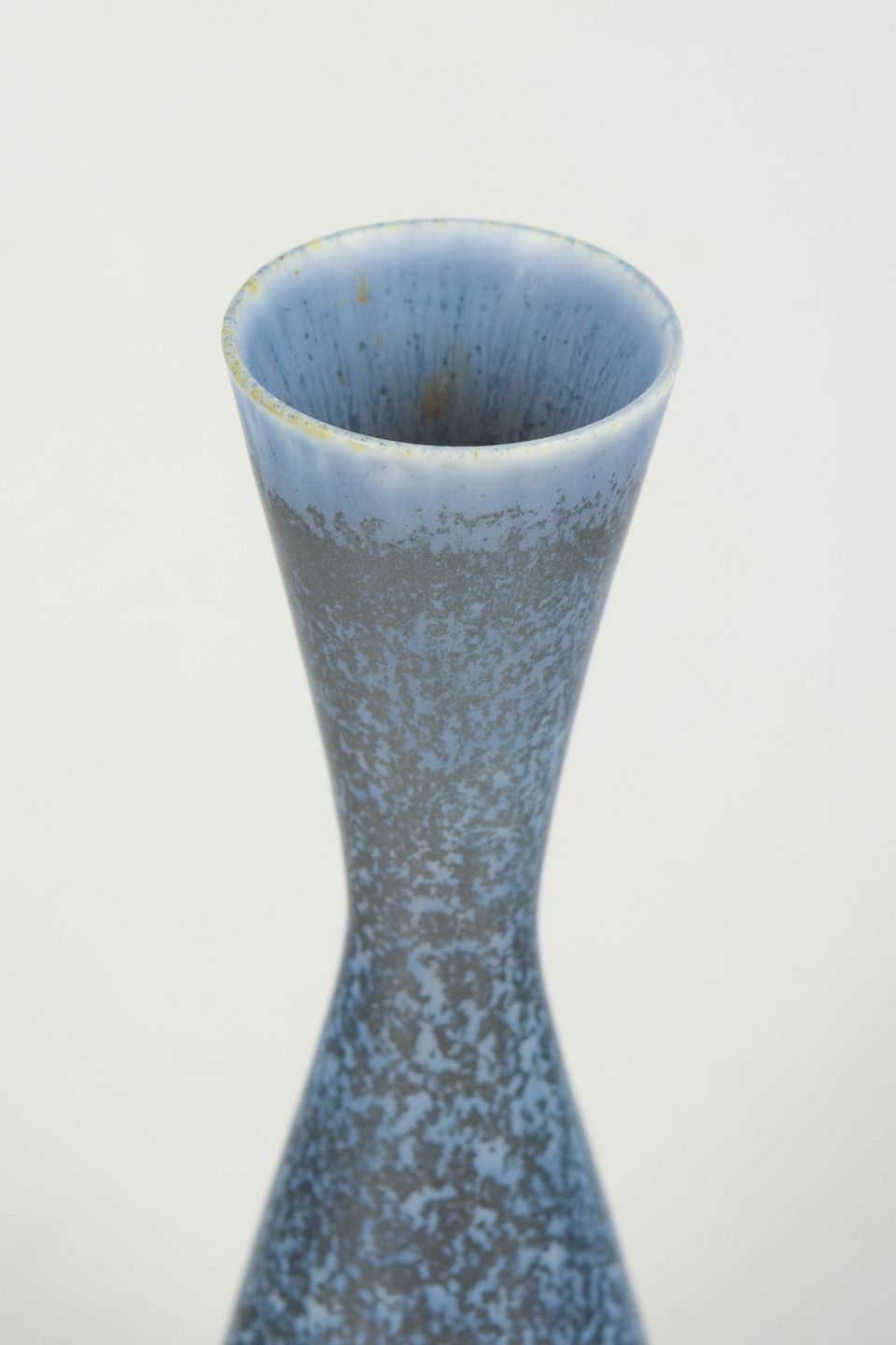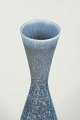 Slank, organisk formet vase i stentøj med smuk blåmeleret glasur og let indsnævret hals. Et karakteristisk eksempel på Stålhane’s arbejde med enkle former og levende glasurer.