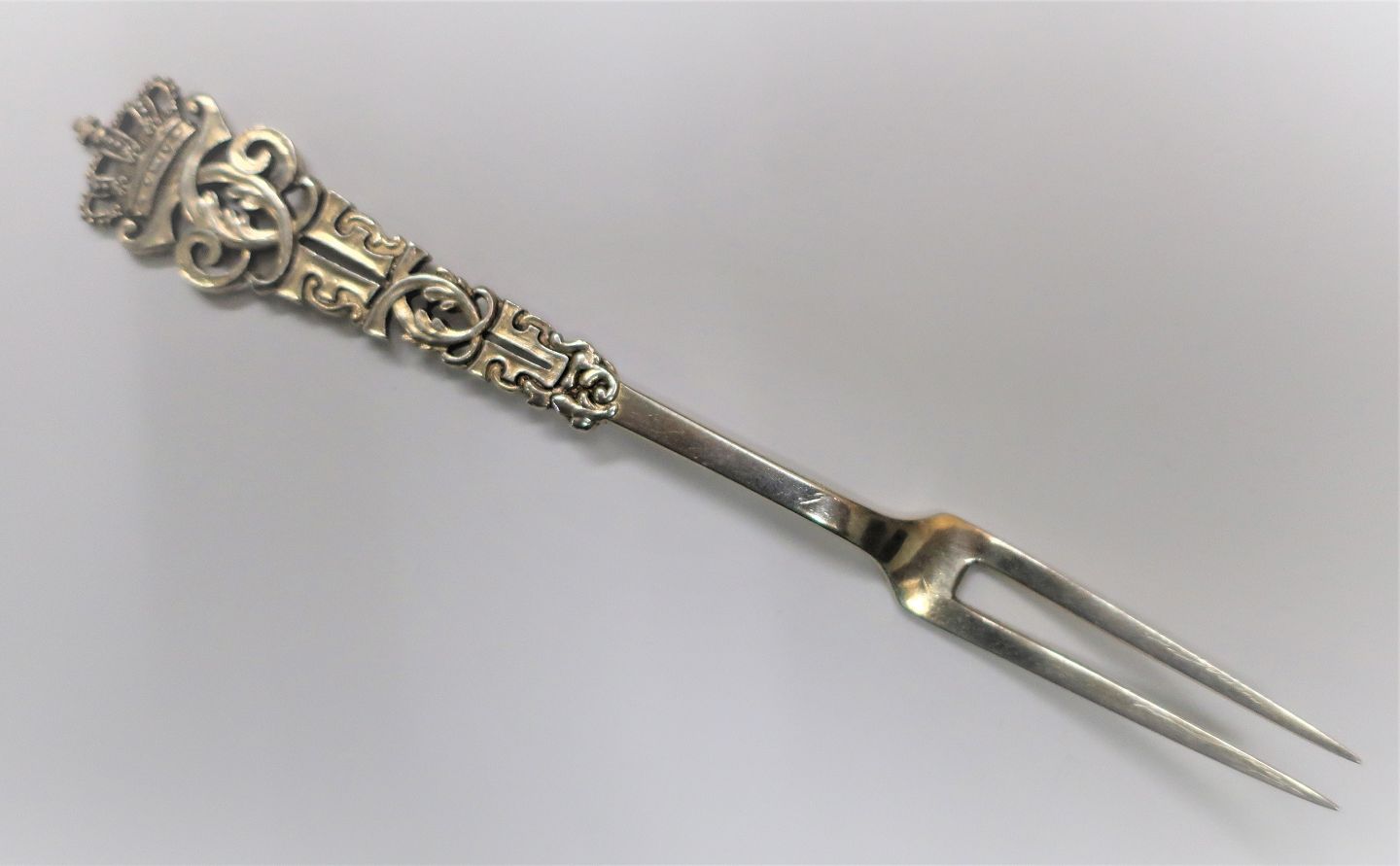 Michelsen. Silver (830). Four king spoon pattern. Meat fork. Length 19 cm. Produced 1905.