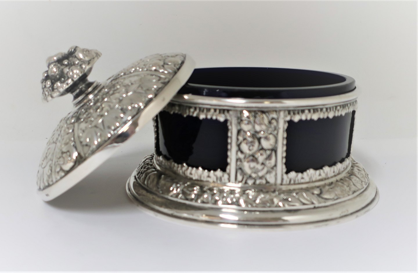 Silver bowl (830) with blue glass insert. Diameter 10.5 cm.