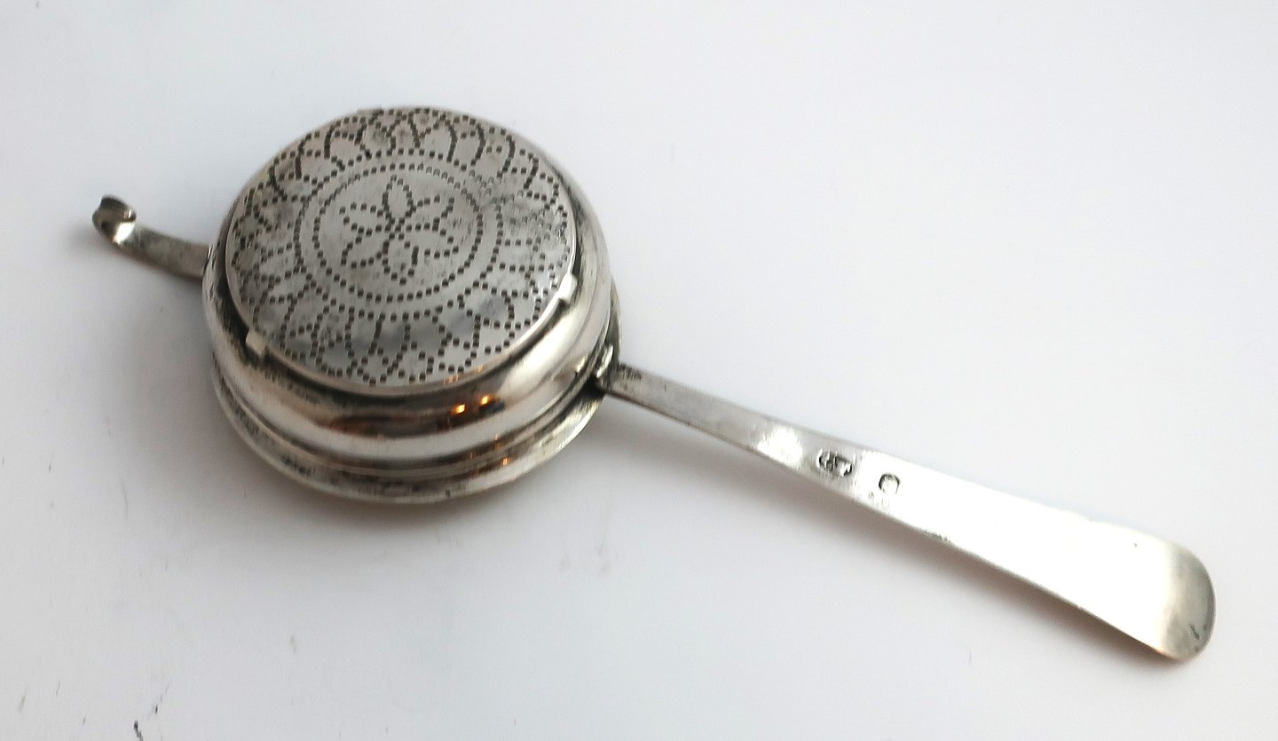 Old danish. Silver Tea strainer (830). Gilded inside. Length 16 cm.