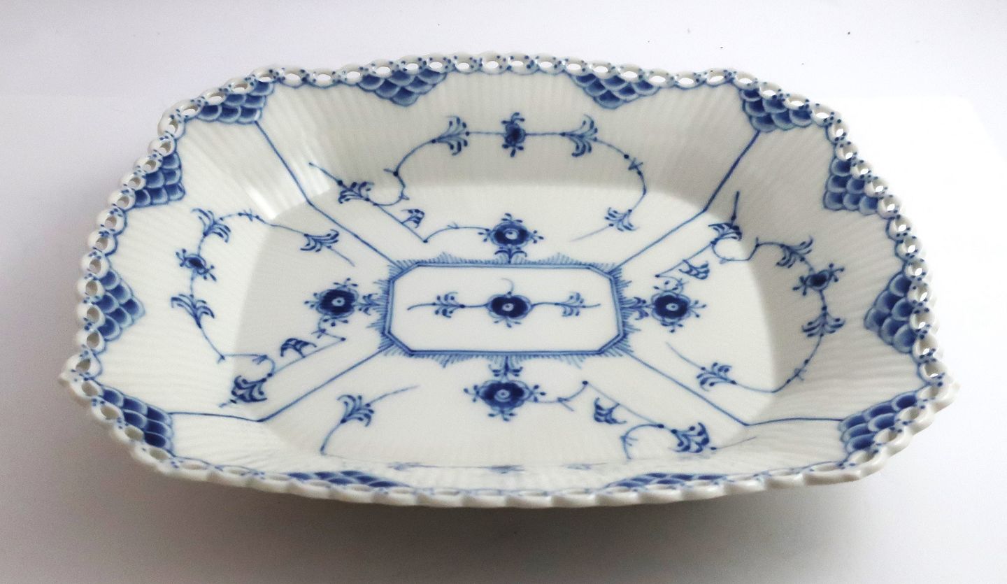 Royal Copenhagen. Blue fluted, half lace. Bread tray. Model 1143. Length 26 cm. Width 22 cm. (1 quality).