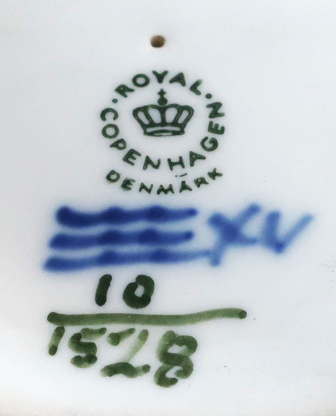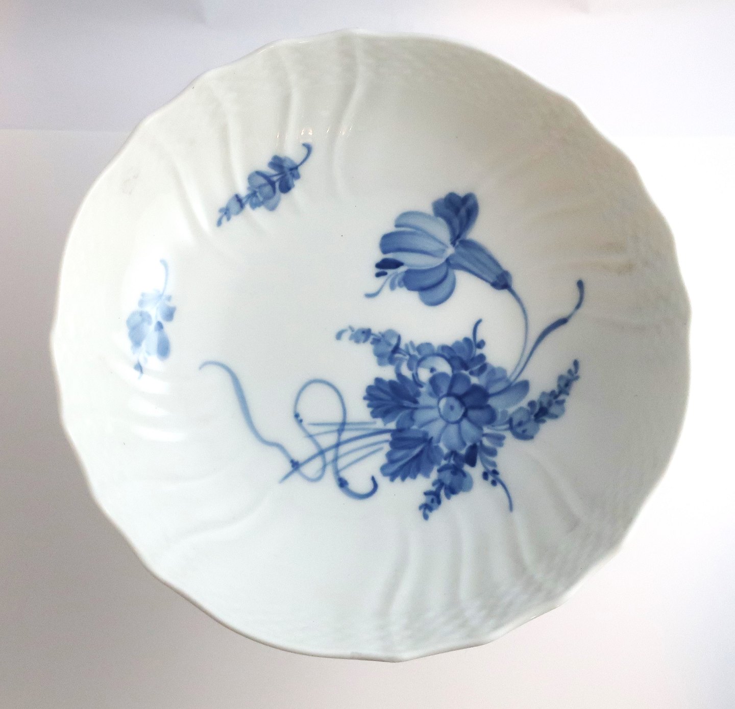 Royal Copenhagen. Svejfet blå blomst. Kagefad på fod. Model 1528. Højde 16 cm. Diameter 21 cm. (1 sortering)