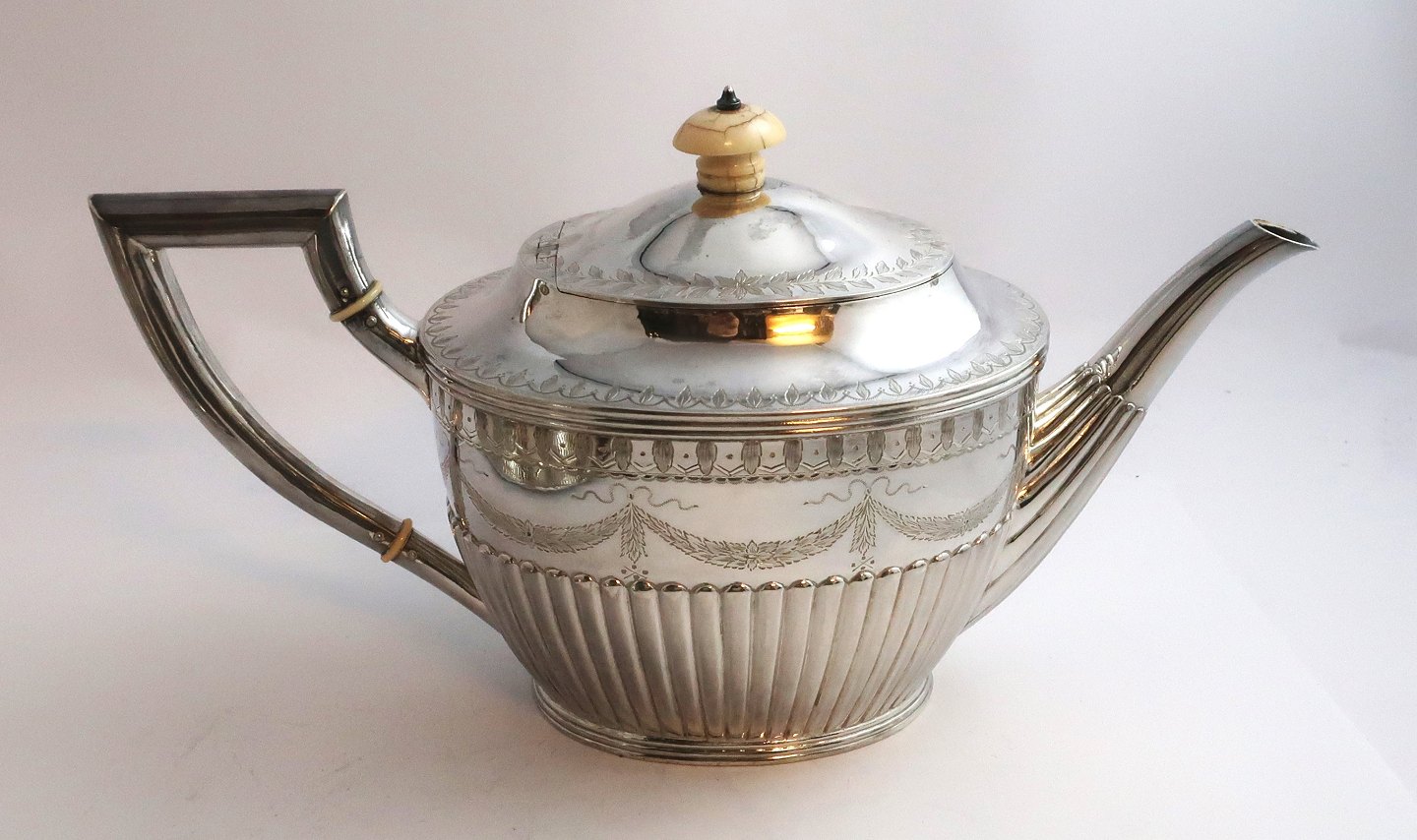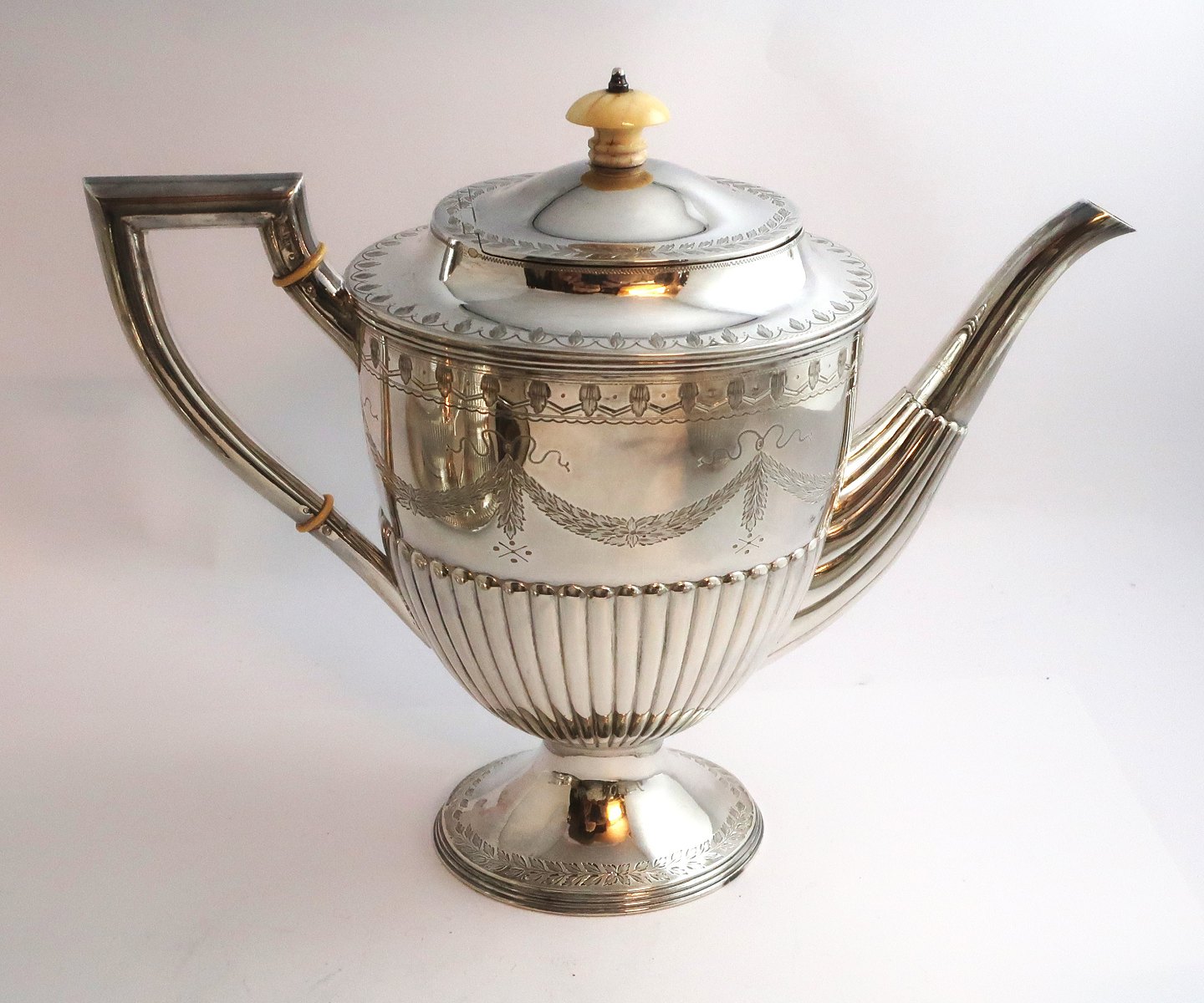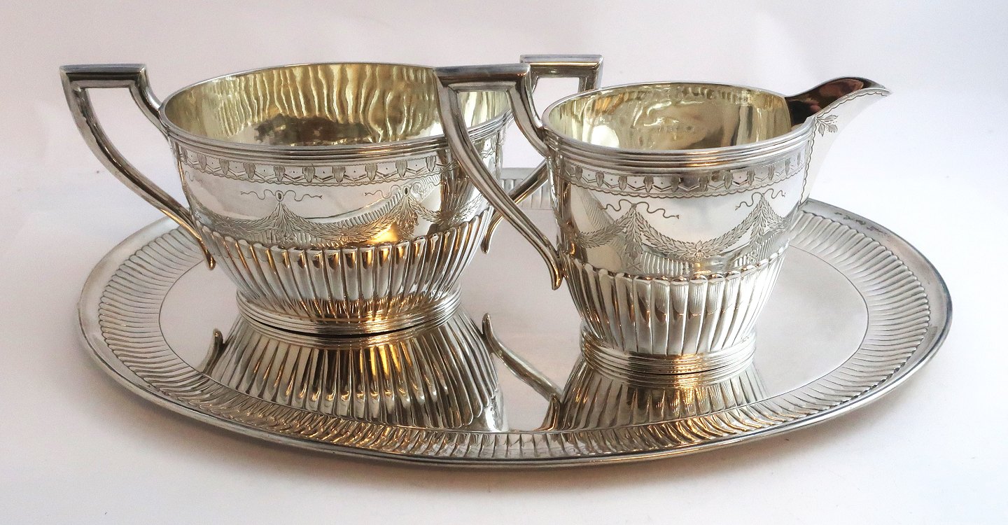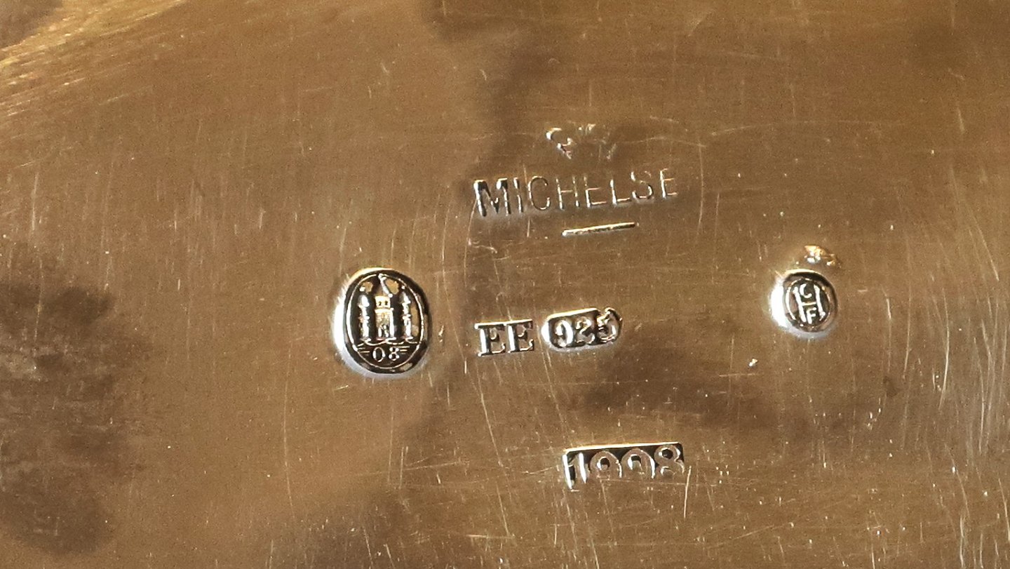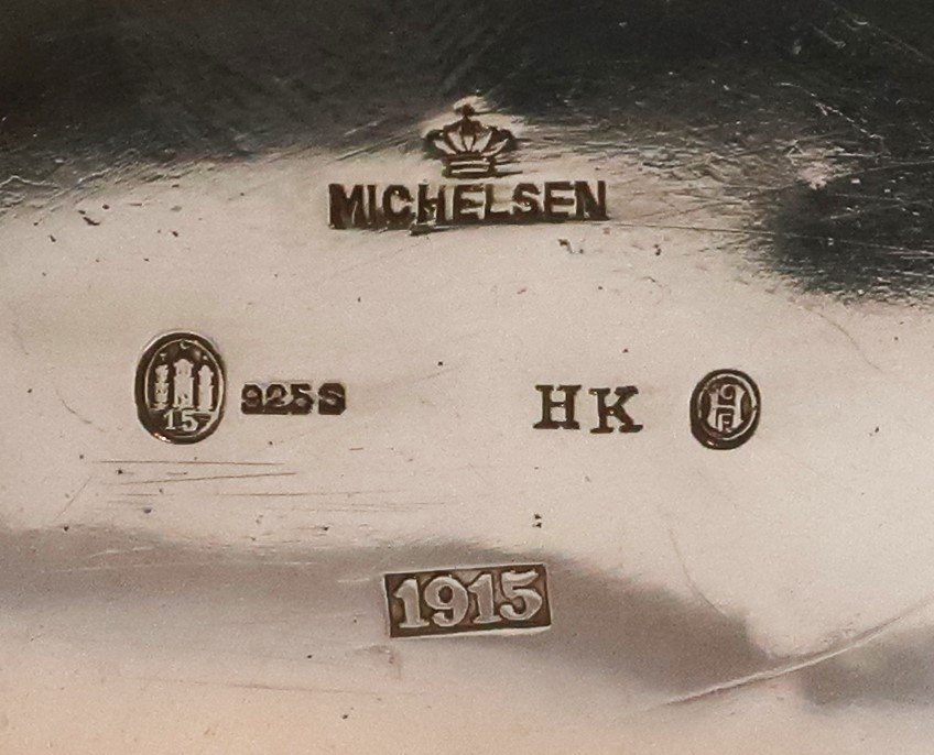 Michelsen. Sterling coffee-tea service (925). 5 parts. Consisting of: coffee pot, teapot, sugar bowl, creamer and small tray. Very well maintained. Produced 1908 & 1915