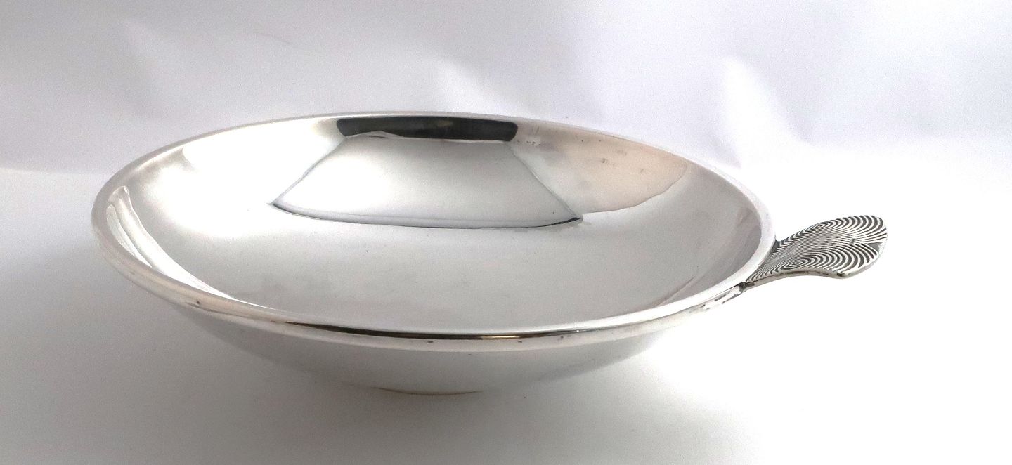 Danish work. Round silver bowl with handle. Diameter 20.5 cm. Produced 1932.