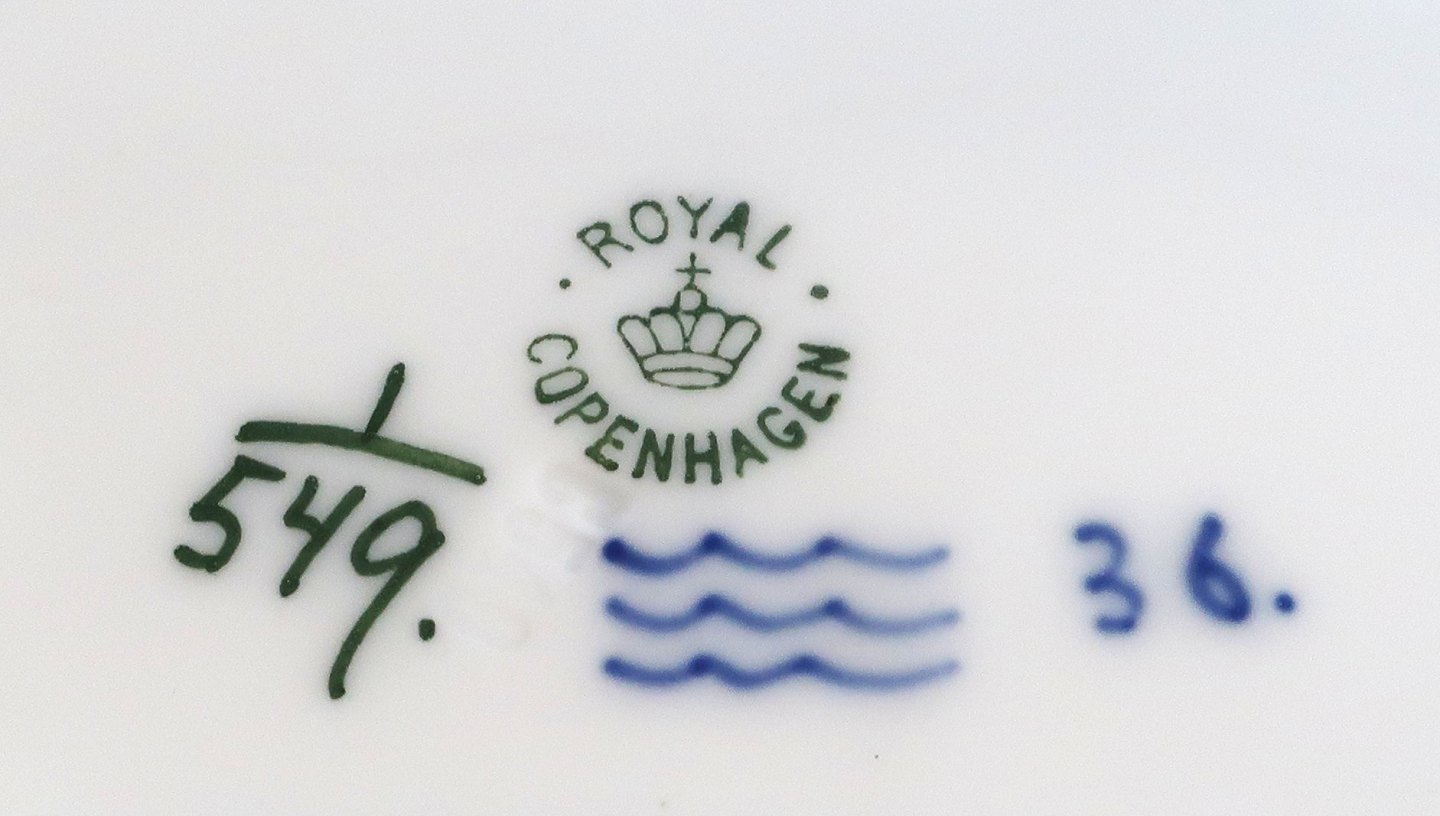 Royal Copenhagen. Musselmalet Halvblonde. Blad asiet. Model 549. Længde 26,5 cm. (1 sortering). Produceret før 1923.