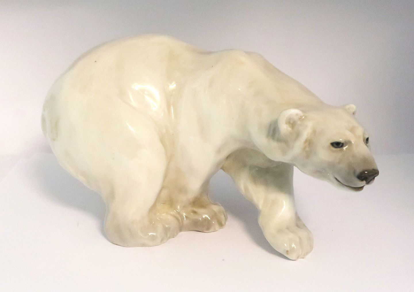 Royal Copenhagen. Porzellanfigur. Stehender Eisbär. Modell 1137. Länge 27 cm. (2 Wahl)