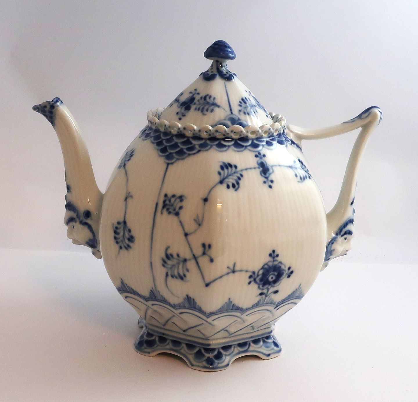 Royal Copenhagen. Musselmalet, riflet. Tekande sto