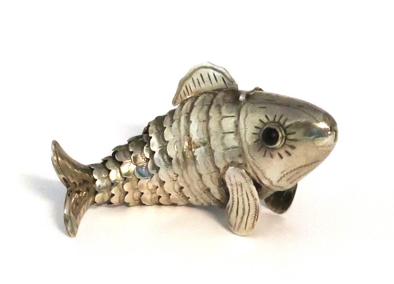 Fritz Sophus Albertus. Silver vinaigrette in the shape of a fish with red stones. Length 8.5 cm