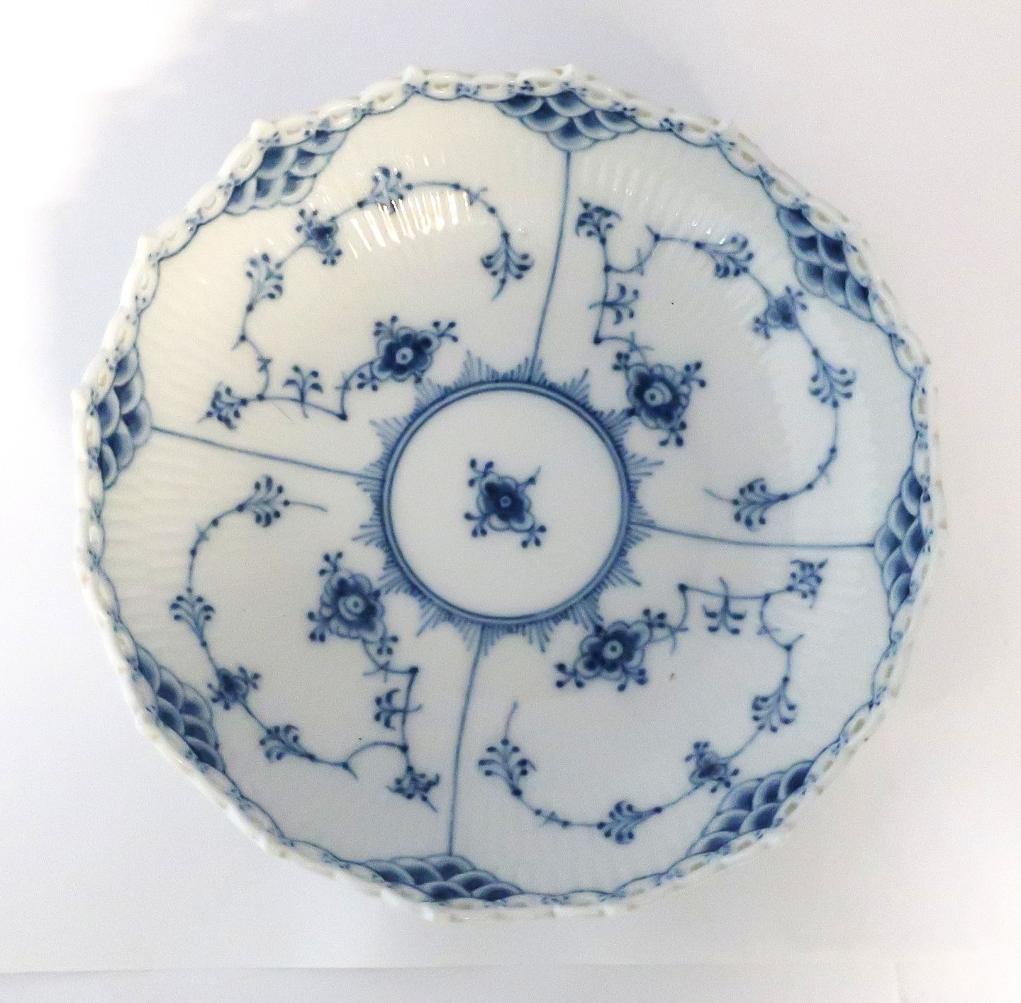 Royal Copenhagen. Blue fluted, full lace. Round bowl. Model 577 (1018). Height 6 cm. Diameter 21 cm. (2 quality)