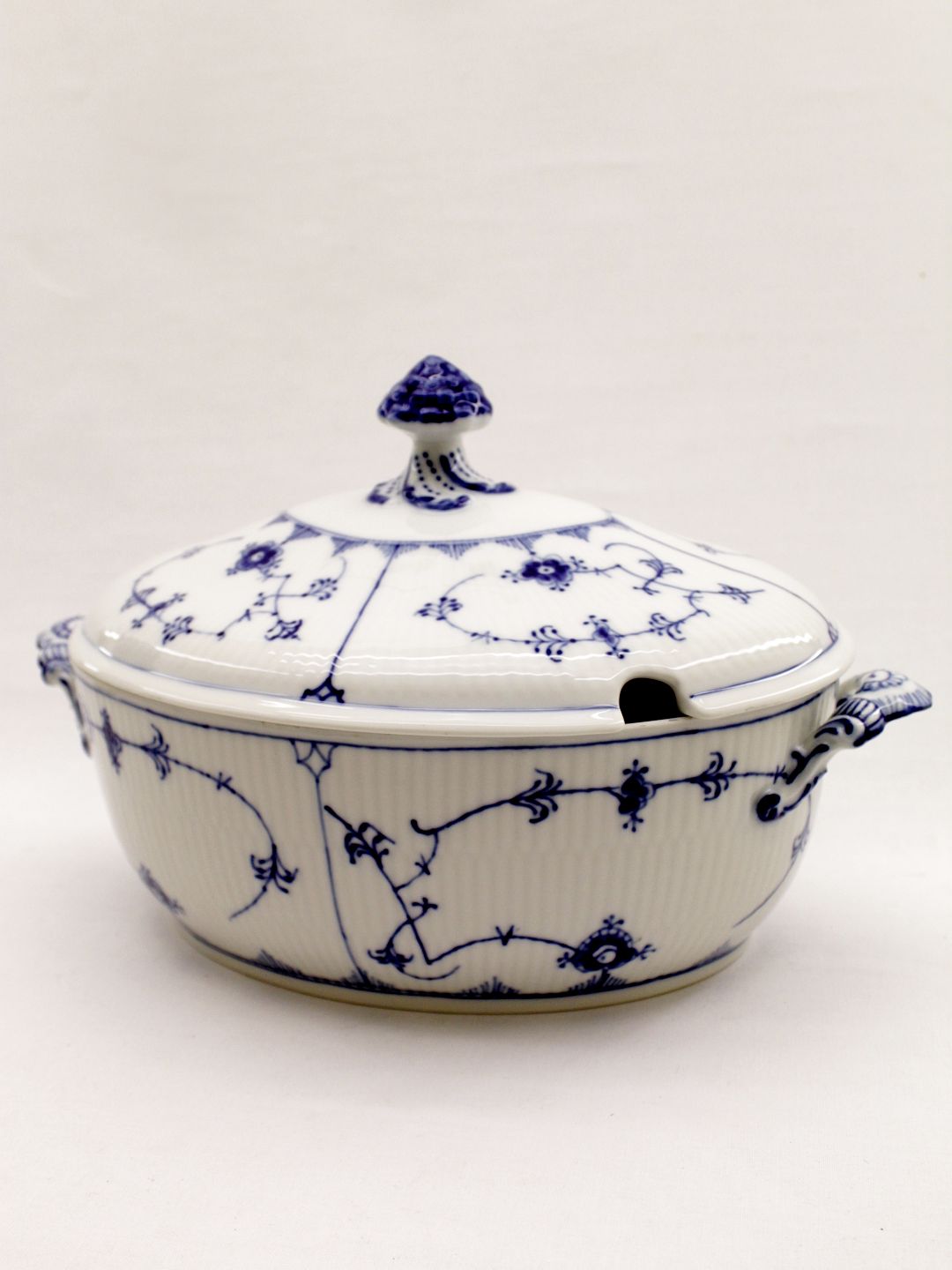 Royal Copenhagen musselmalet riflet terrin 1/ 214 2.sort.