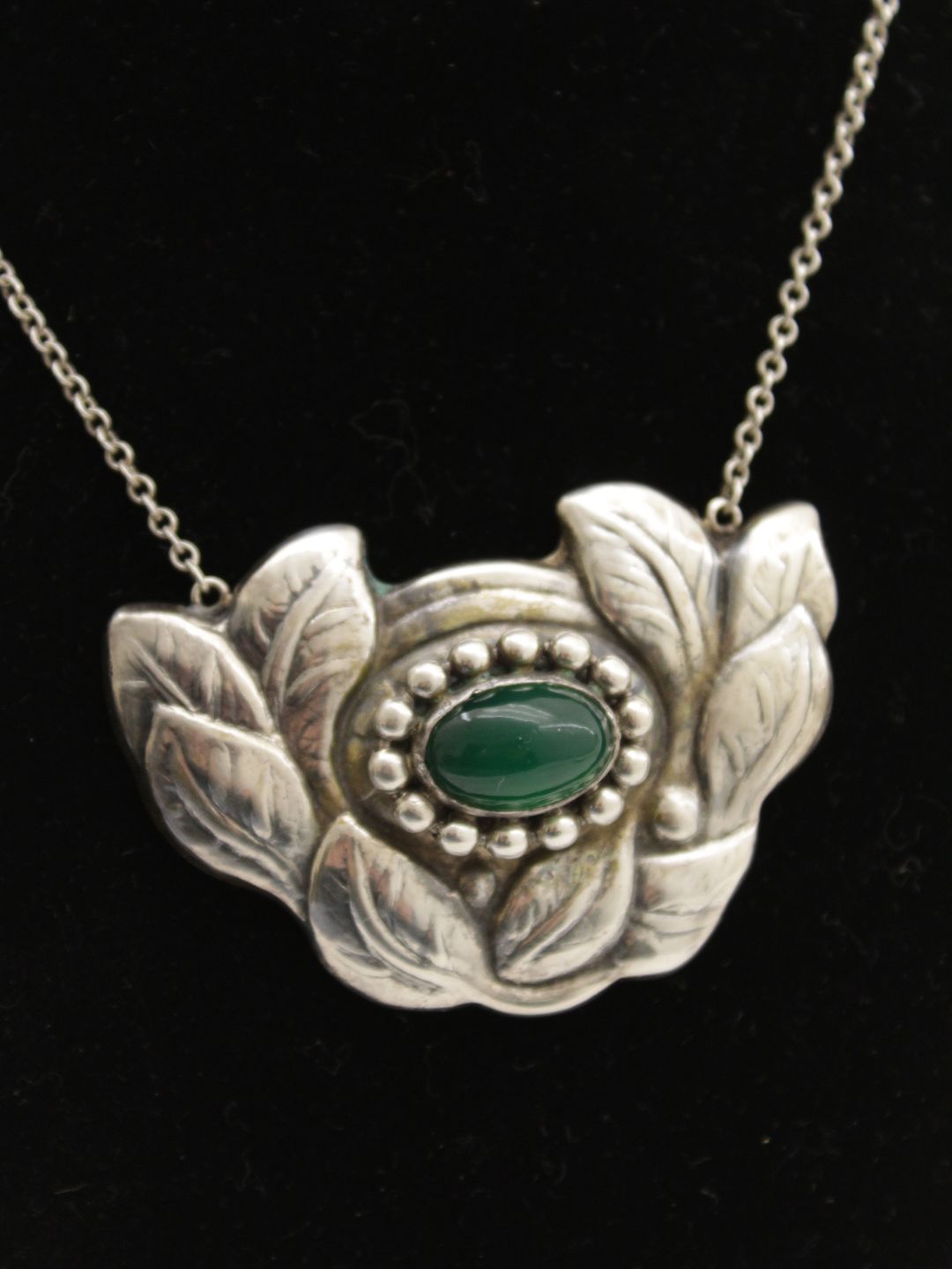 Bernhard Hertz 830 Silver Jugend Pendants 6.8 x 4.7 cm. with chrysopras no. 326569
