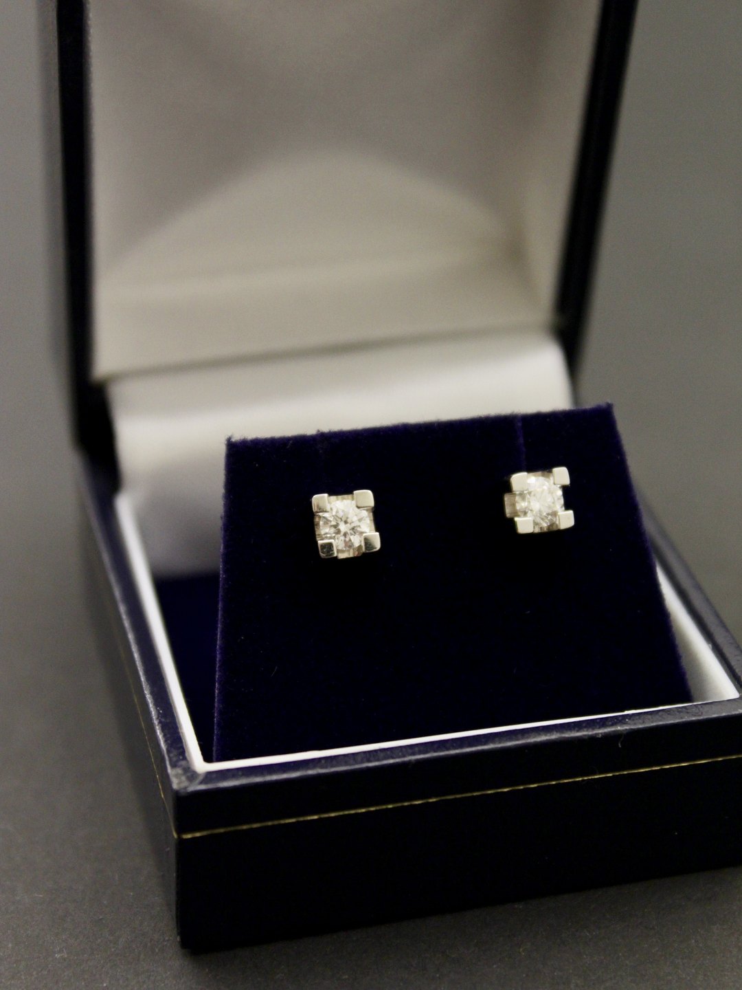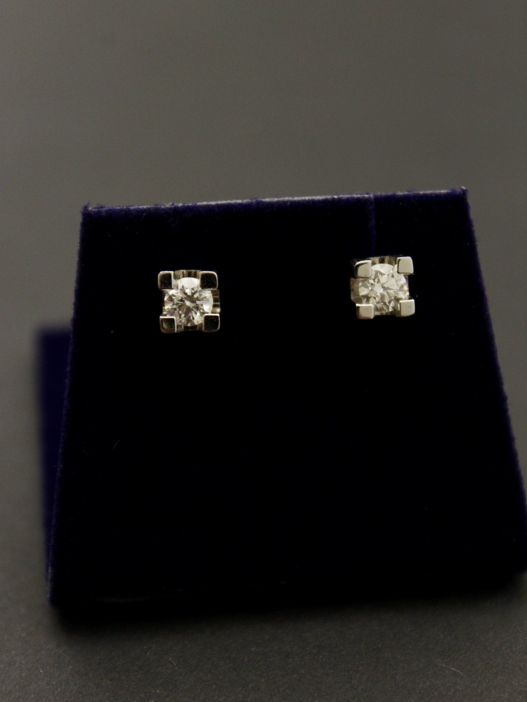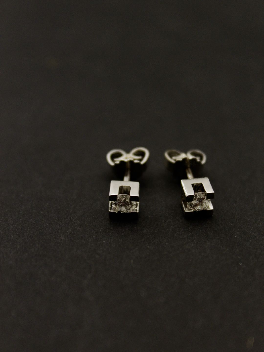 14ct white gold studs 4.7 x 4.7 mm. with diamond D. 3.7 mm. ca. 0.2 ct. No. 350888