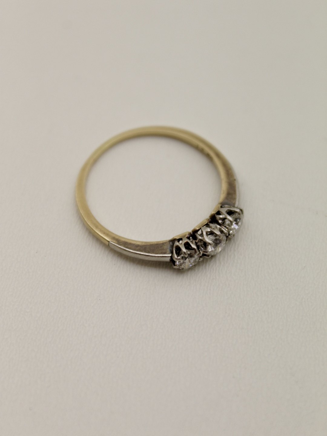 14 carat red and white gold ring size 56 with three diamonds approx. 0.5 ct. No. 371600