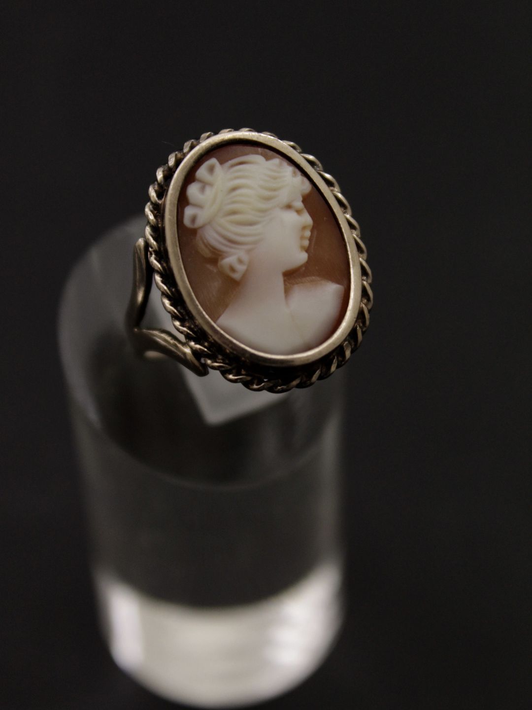 8 karat guldring størrelse 56 med came 1,5 x 1,9 cm.