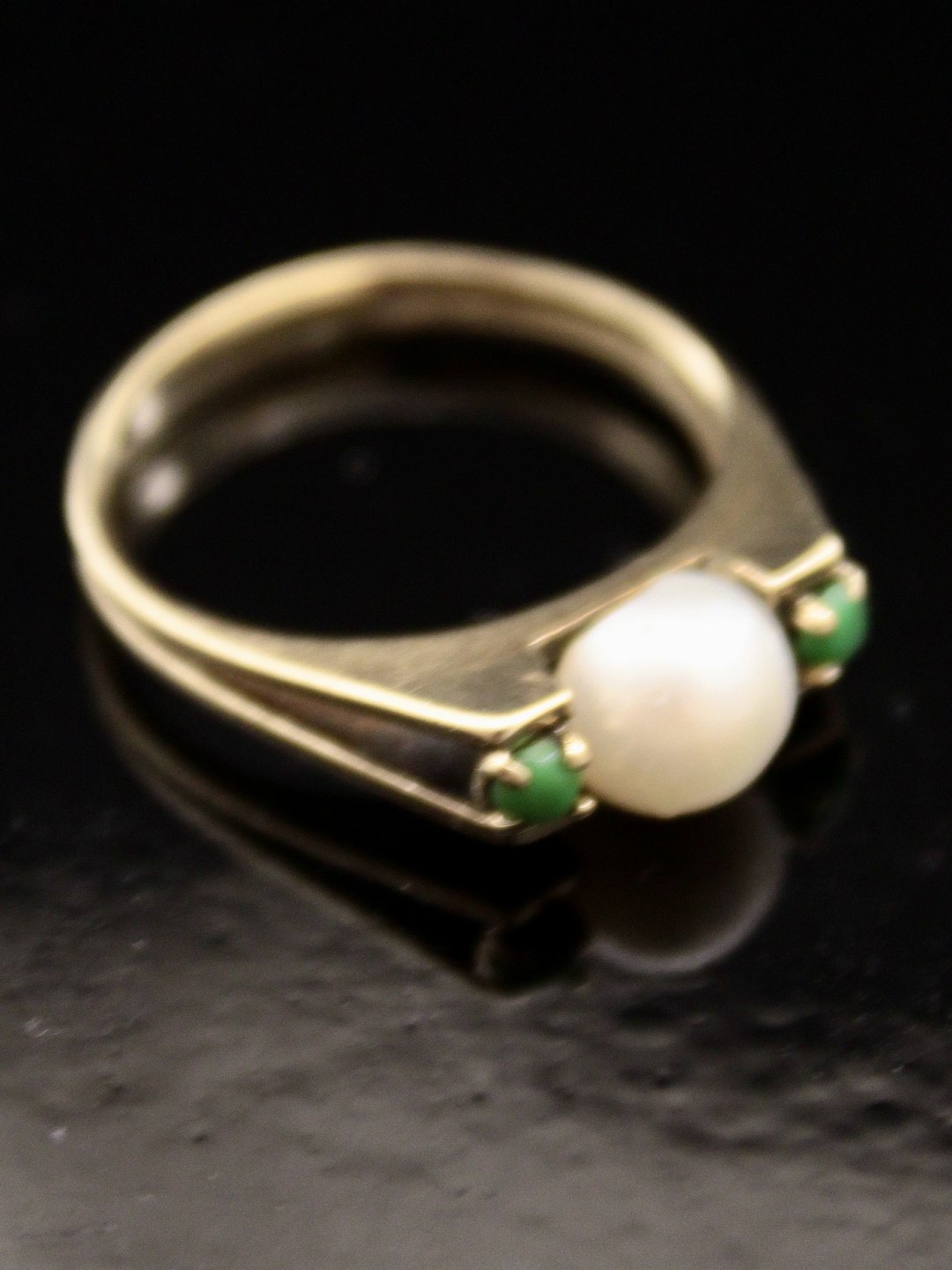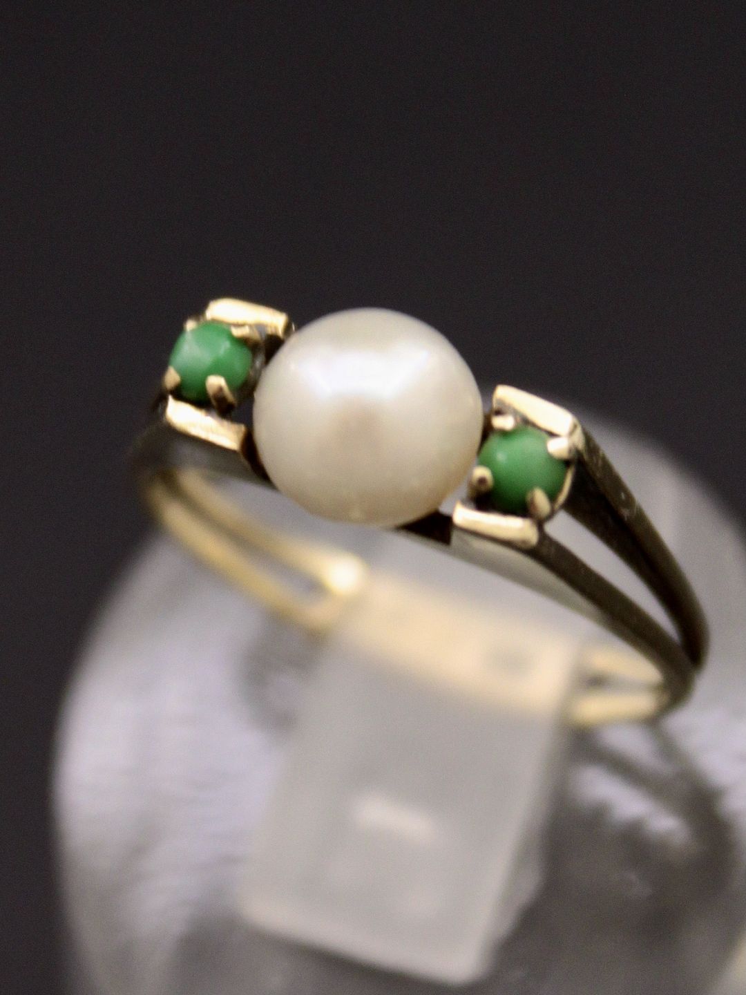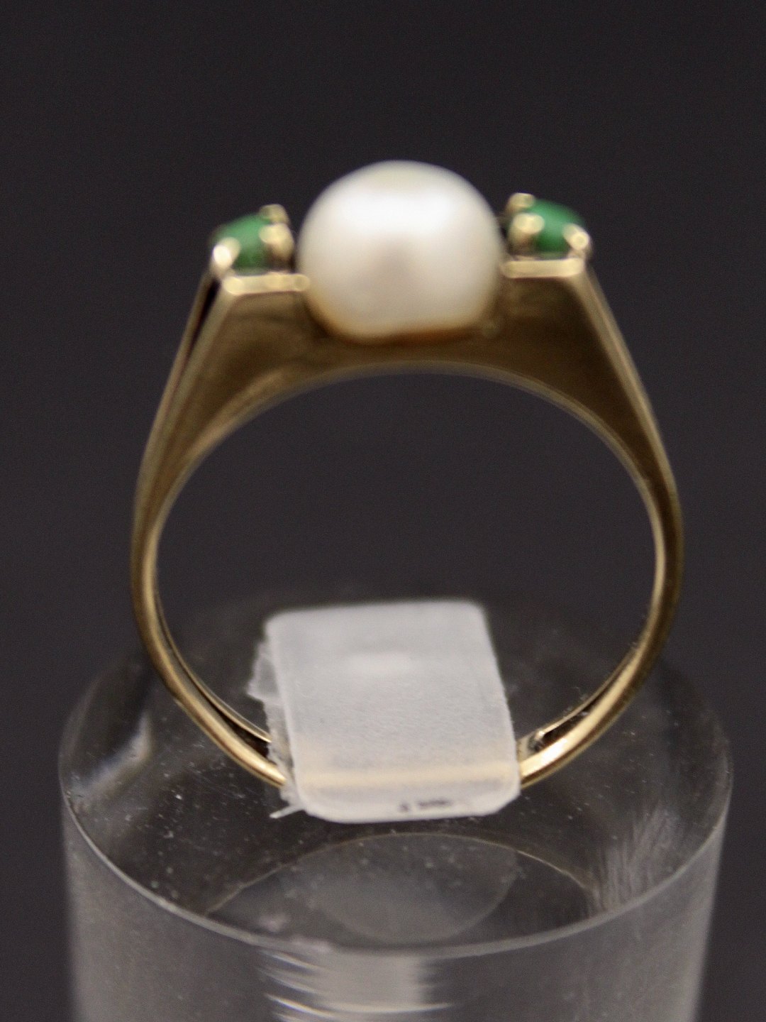 8 karat guld ring størrelse 53-54 med ægte perle og malakit