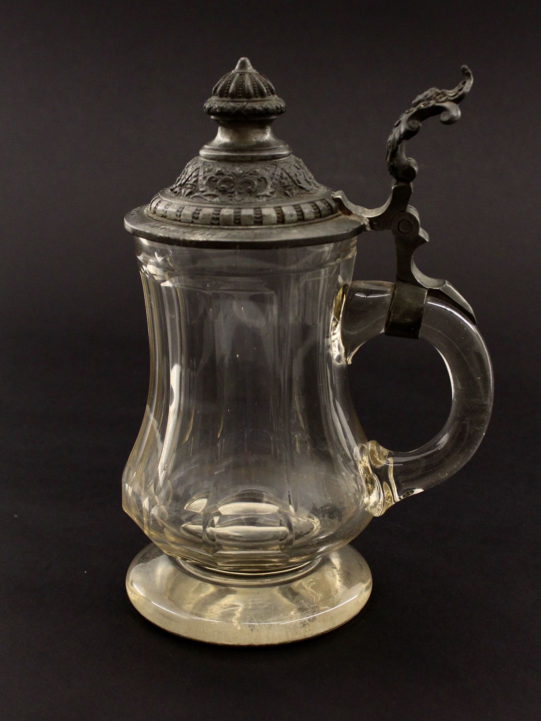 Tysk ølkrus 21 cm. med tin låg 19.årh. emne nr. 458449