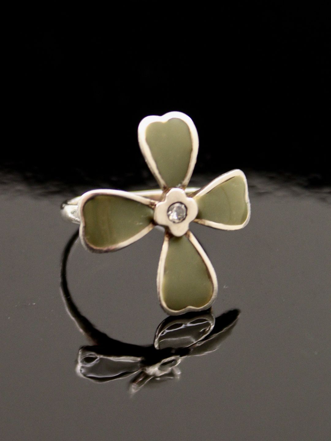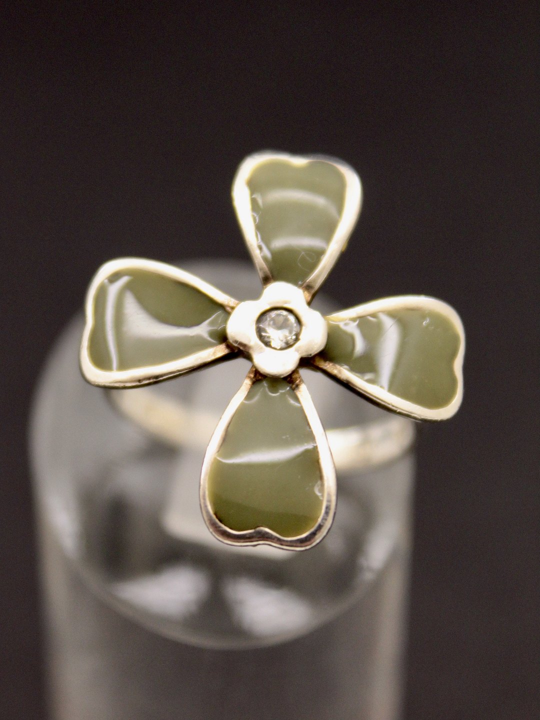 Sterling sølv ring størrelse 56 firkløver med emalje og klar sten emne nr. 476319