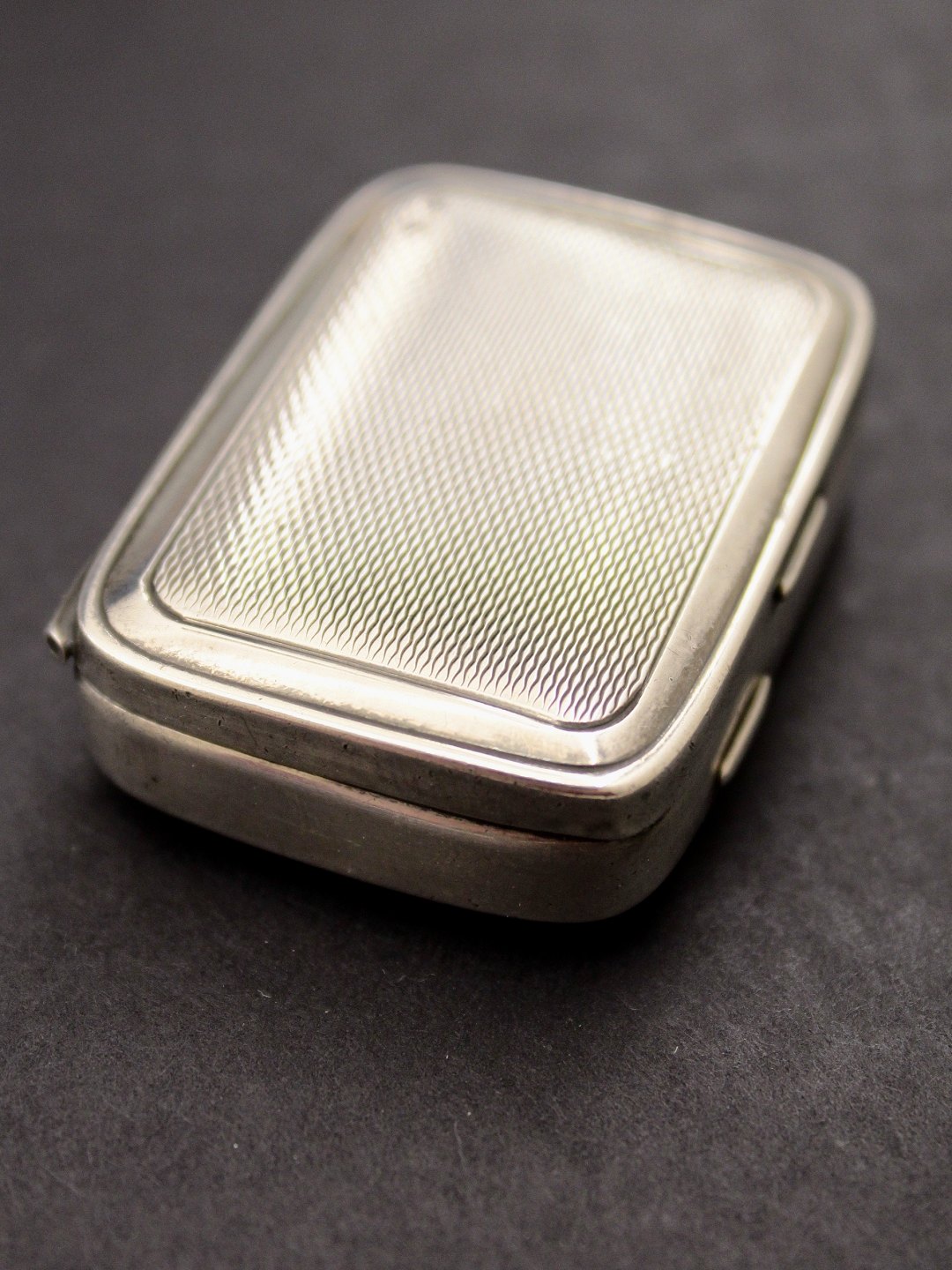 Sterling silver pill box 4.6 x 3.4 x 1.4 cm. item no. 493491