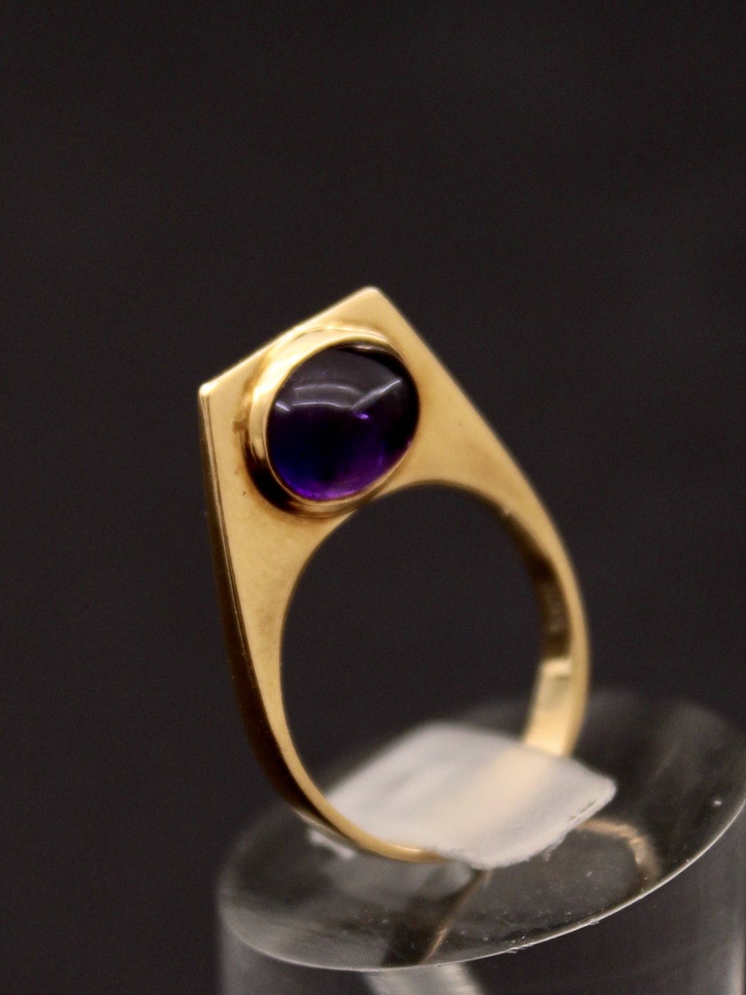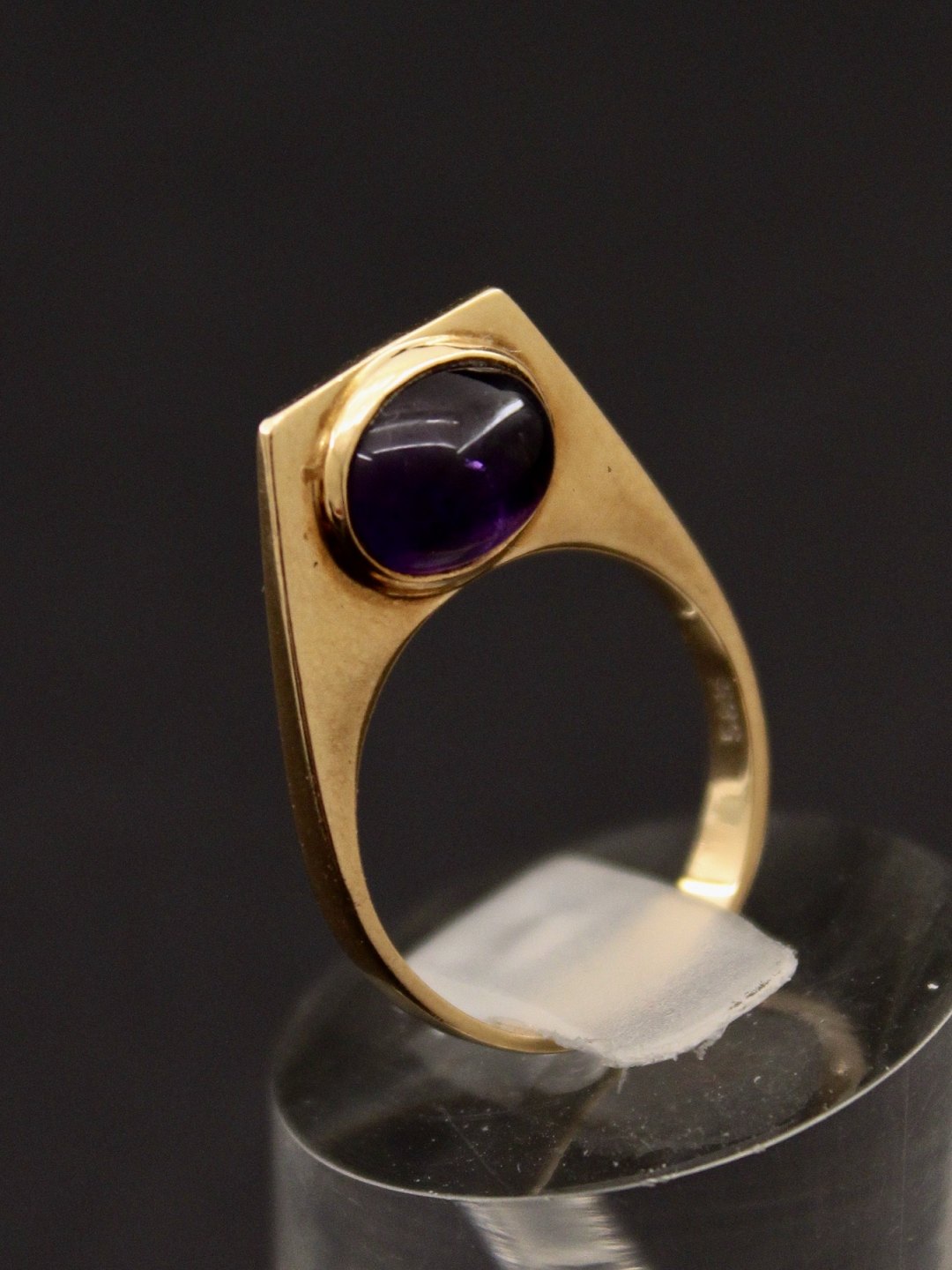 14 karat guld ring størrelse 51-52 med ametyst dansk design ring fra guldsmed N C Nielsen Horsens emne nr. 495909