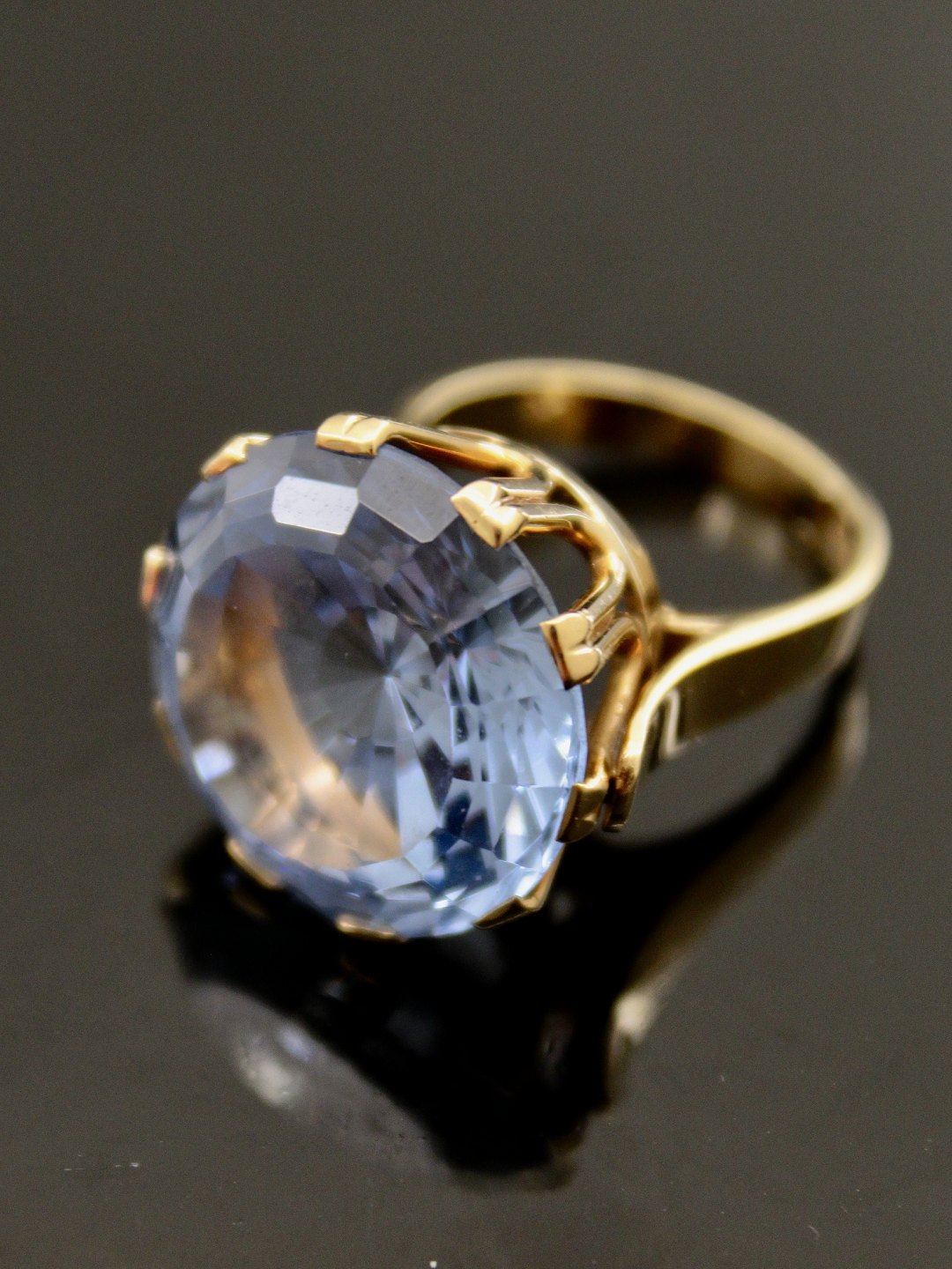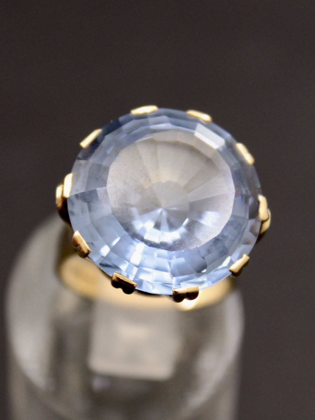 14 carat gold ring size 53 with aquamarine D. 1.8 cm. from jeweler J�rgen Larsen Copenhagen item no. 496116