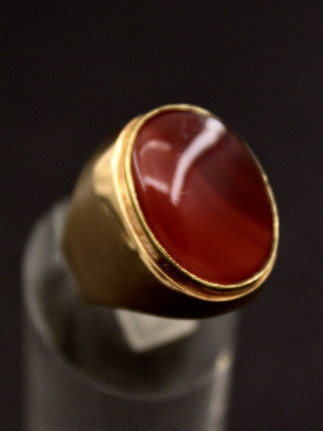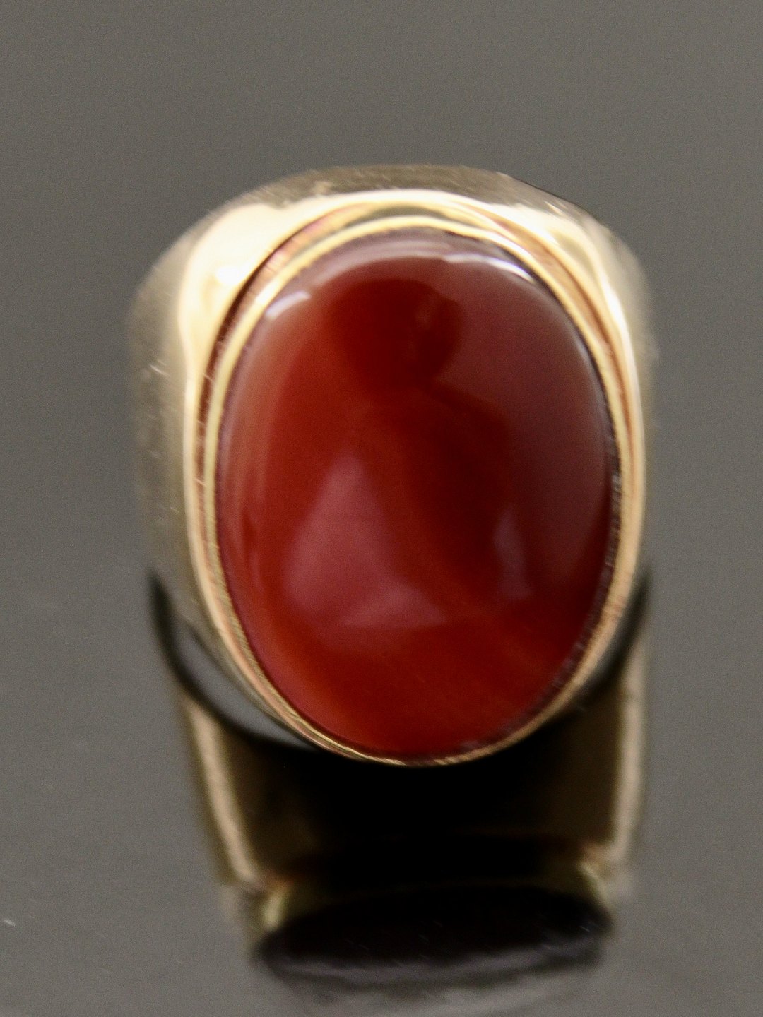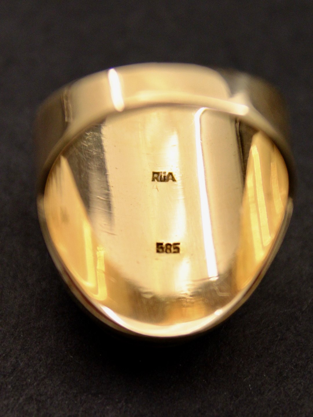 14 karat guld ring størrelse 56-57 med agat vægt 12,3 gram fra guldsmed Rudolf Andersen Aabenraa emne nr. 498013