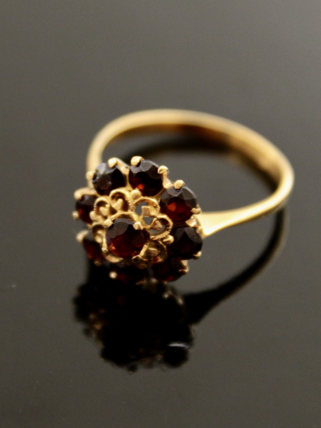 18 karat guld ring størrelse 59 med granater emne nr. 502708
