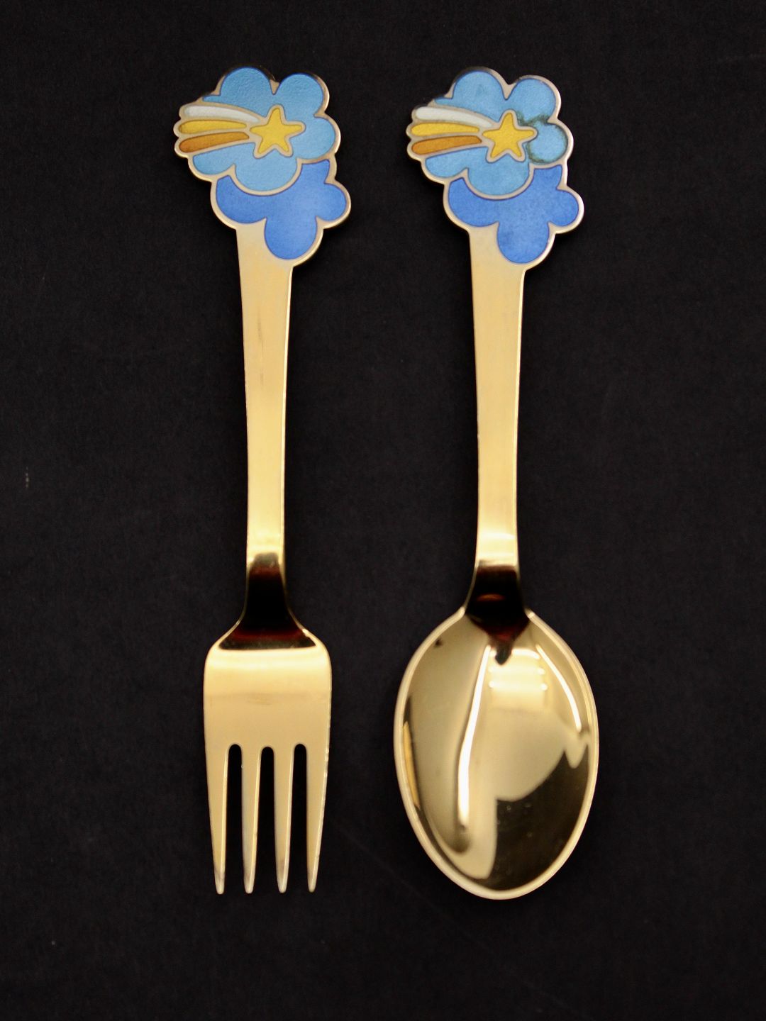 A Michelsen jule ske og gaffel 1975 forgyldt sterling sølv emne nr. 521780 gaffel solgt