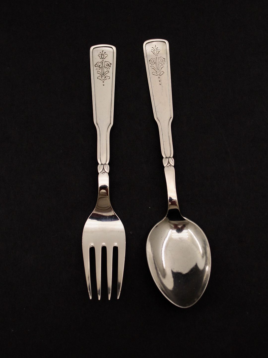 Tretårnet sølv barne bestik 14 cm. flot ingen graveringer emne nr. 527266