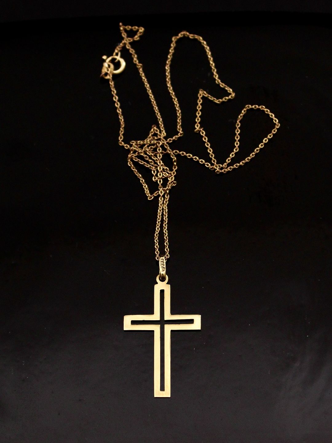 8 karat guld kors 3 x 1,8 cm. og 8 kt. kæde 43 cm. emne nr. 537210