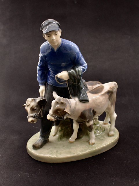 Royal Copenhagen dreng med kalve 1858 flot 1.sortering emne nr. 573396