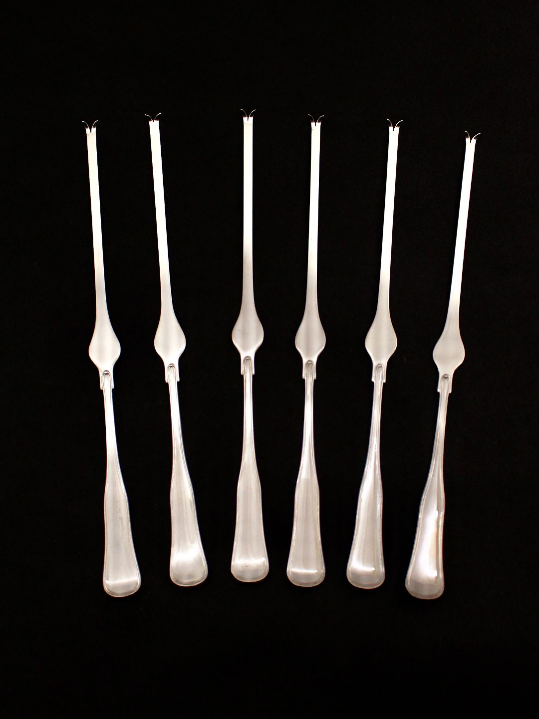 Dobbeltriflet tretårnet sølv hummer gafler 21,5 cm. sæt på 6 med flot monogram emne nr. 580123