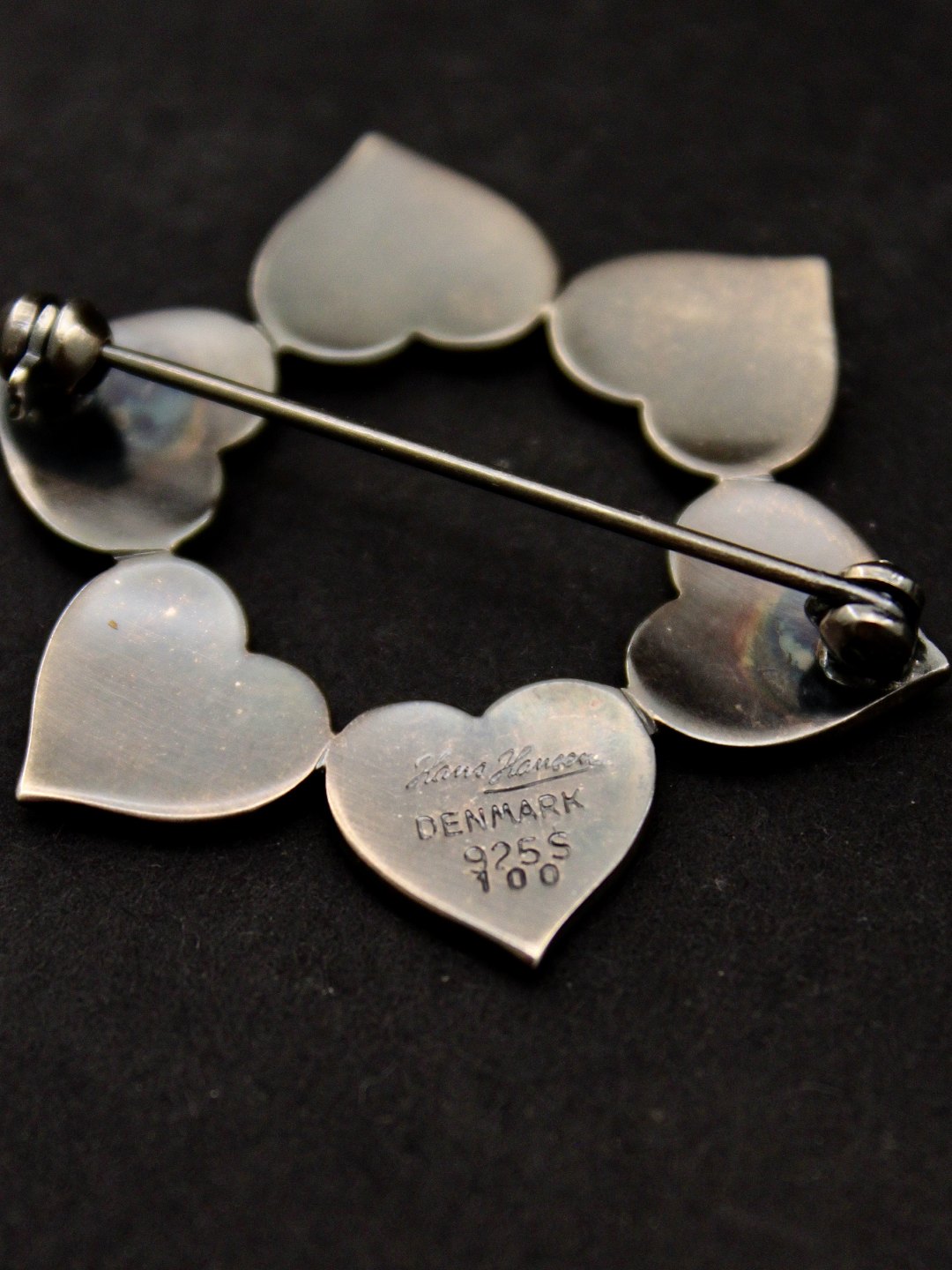 Hans Hansen sterling sølv hjerte broche D. 3,8 cm. emne nr. 580909