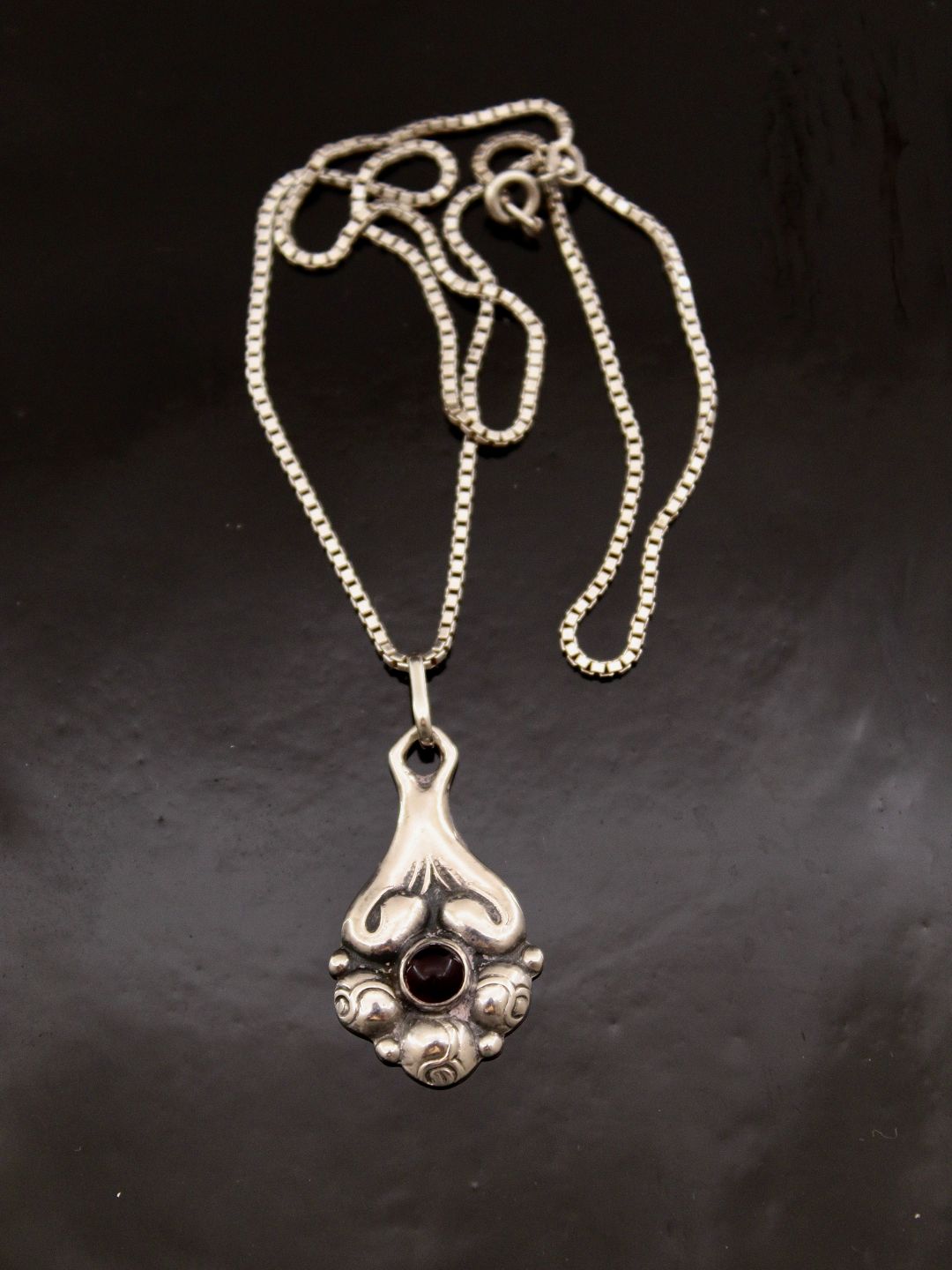830 silver art nouveau pendant 3 x 1.8 cm. and sterling silver chain 39 cm. subject no. 585896