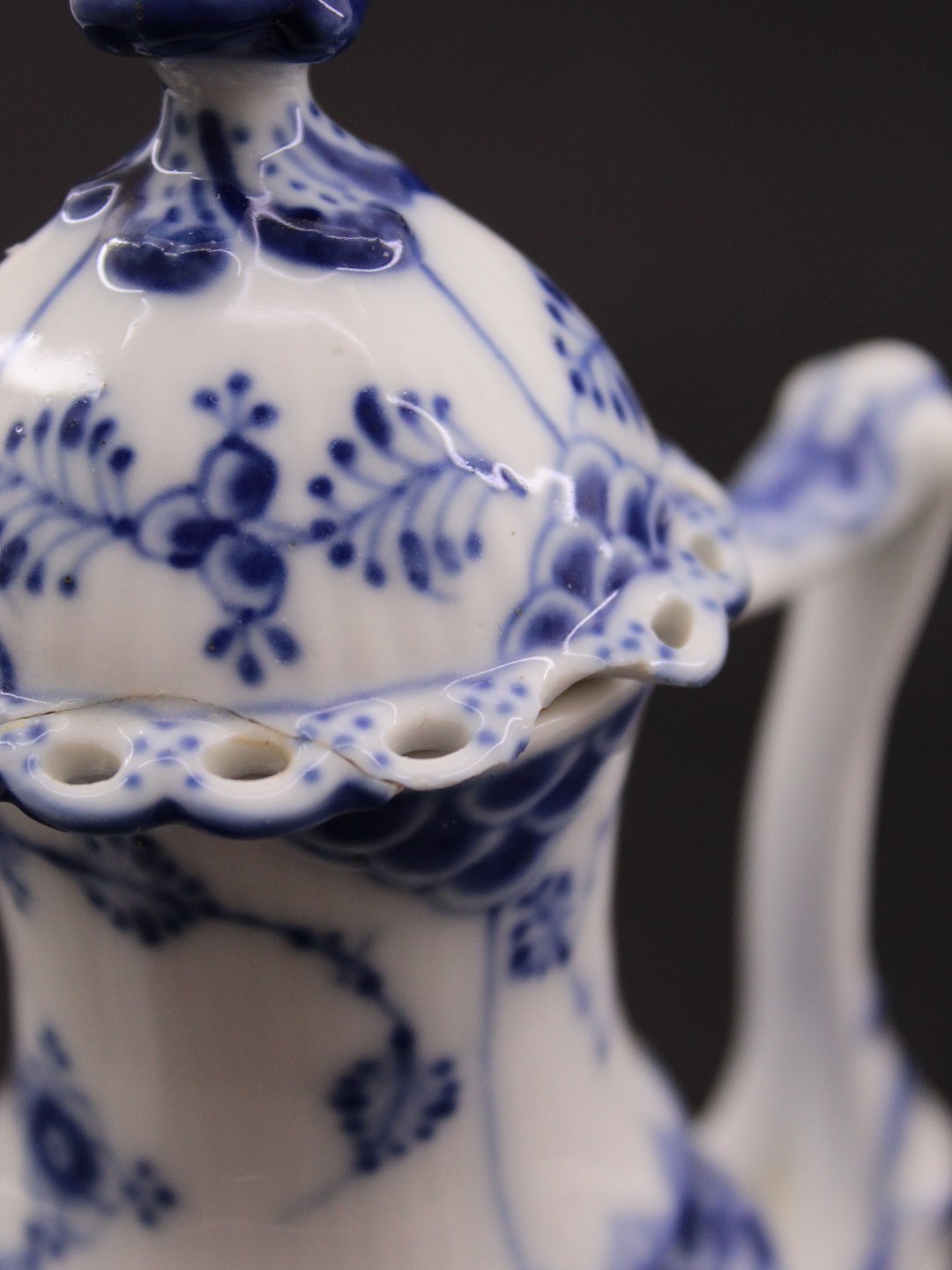 Royal Copenhagen mussel painted coffee pot 1/1030 1st sorting but with defects item no. 589855