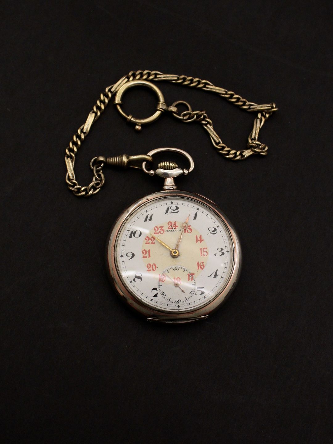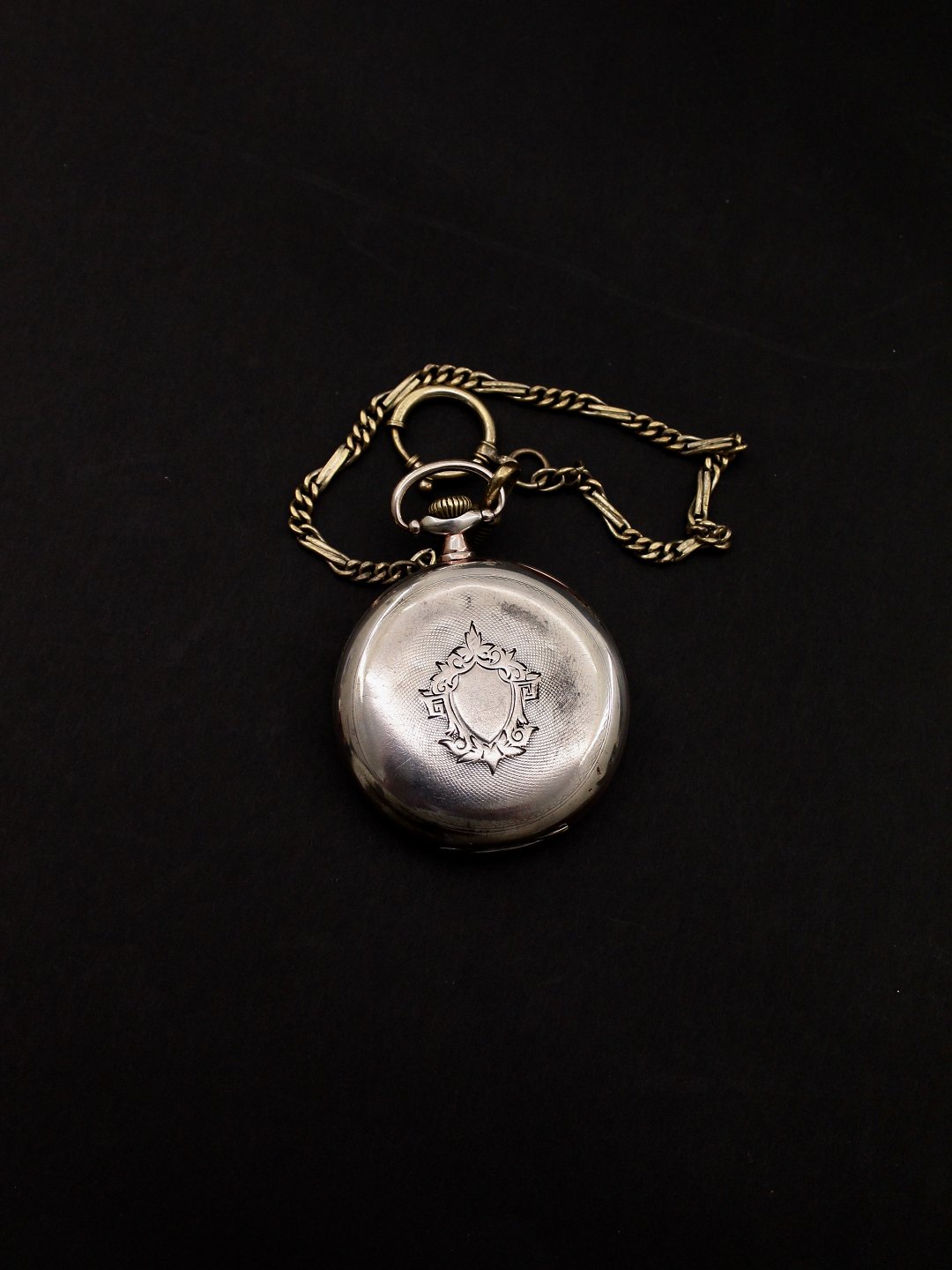 Silver pocket watch with chain, the watch works but probably needs servicing. item. 611397