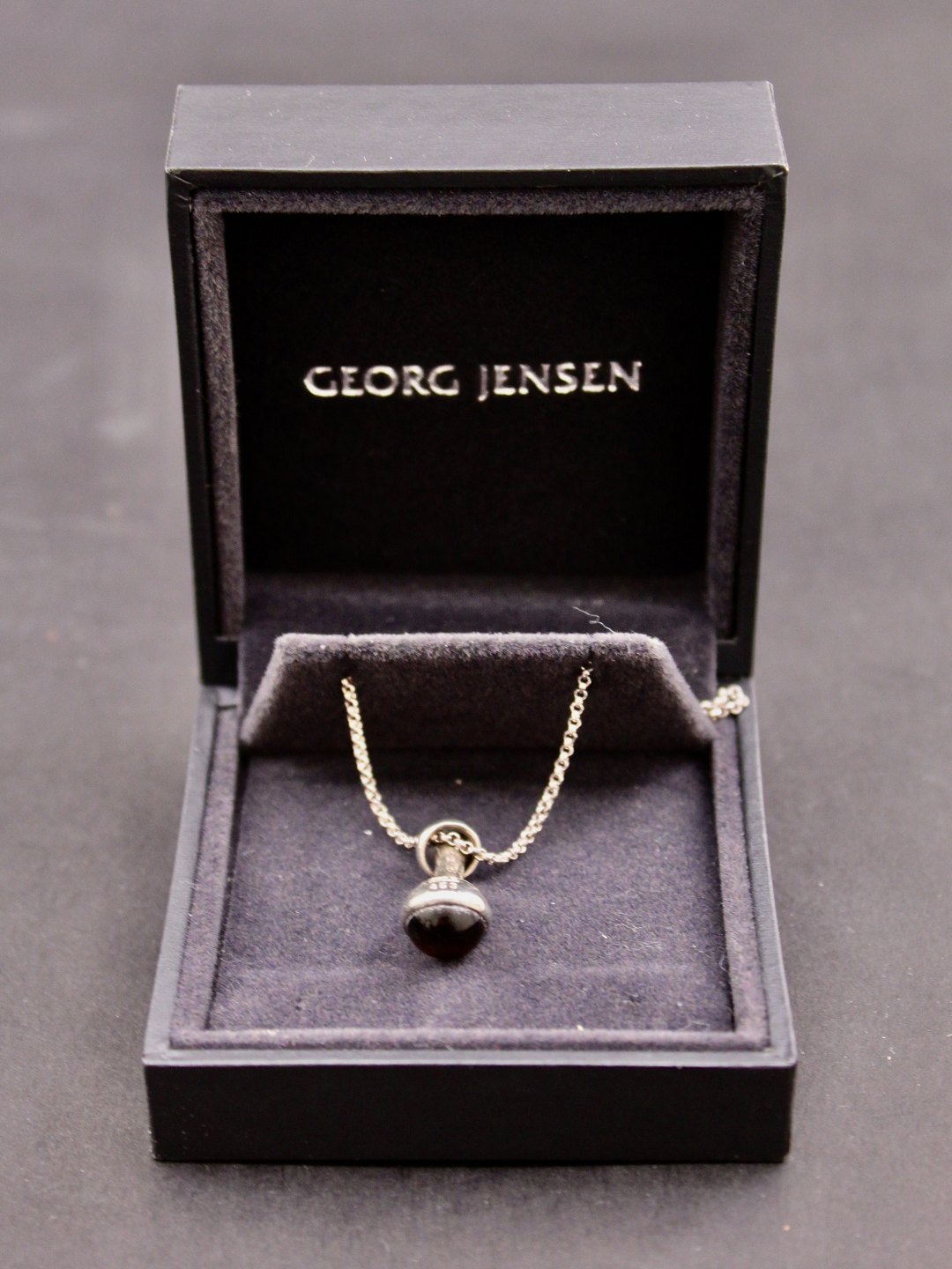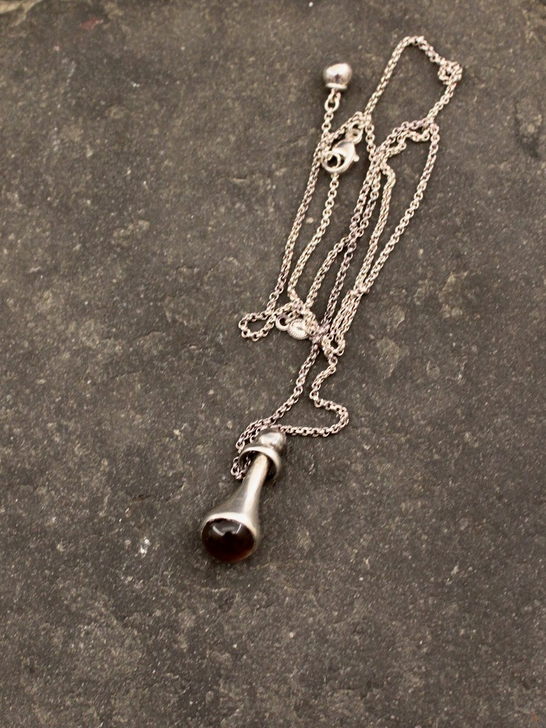 Georg Jensen Sterling Sølv Halskæde med Vedhæng No. 453 Droplet røg quartz leveres i original box emne nr. 614935