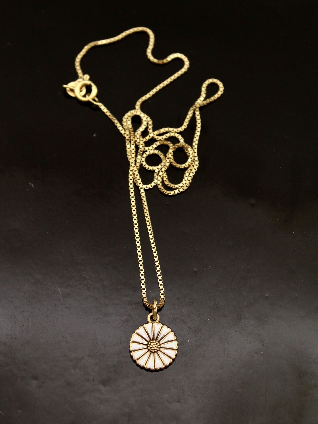 Forgyldt sterling sølv marguerit vedhæng 1,2 cm. fra B Hertz og forgyldt sterling sølv kæde 45 cm. emne nr. 619338