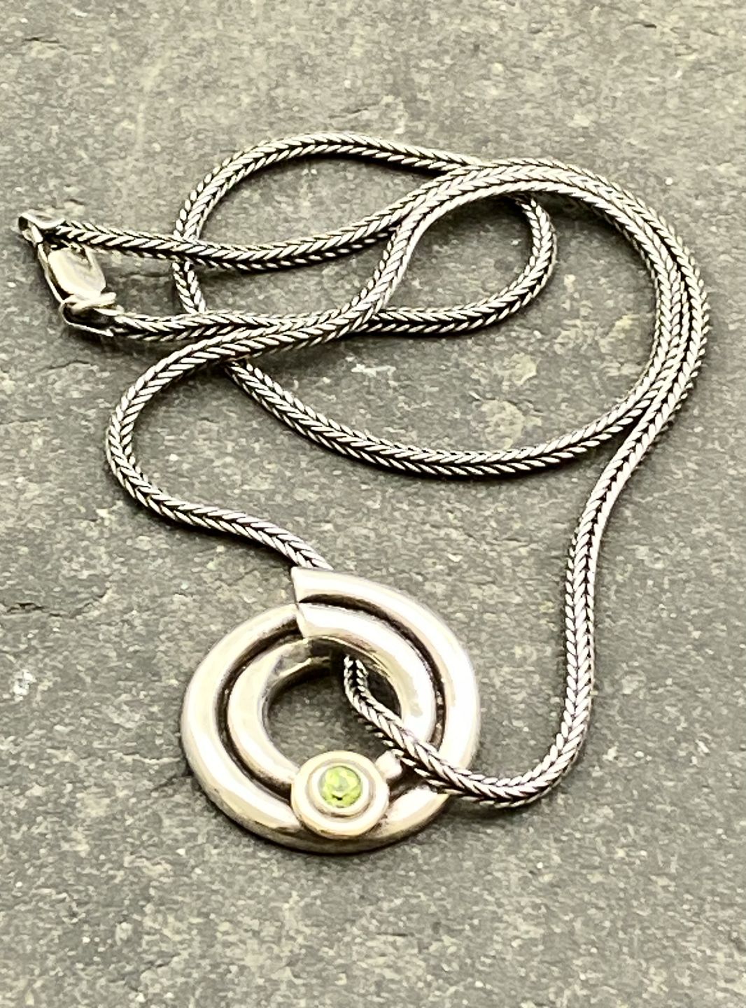 Sterling silver pendant D.2.5 cm. with sea green semi-precious stone and 45 cm. sterling silver chain item no. 626583