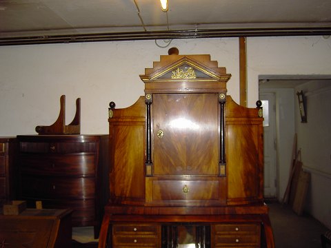 Nice bureau with top. Fully restored. Brilliant satin finish. Brass fittings and various ornaments repaired.