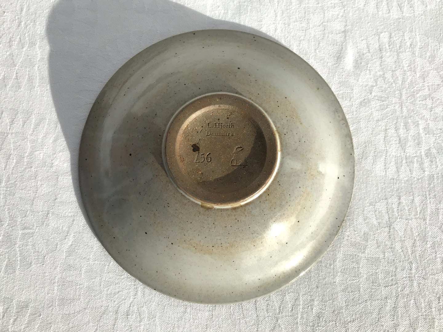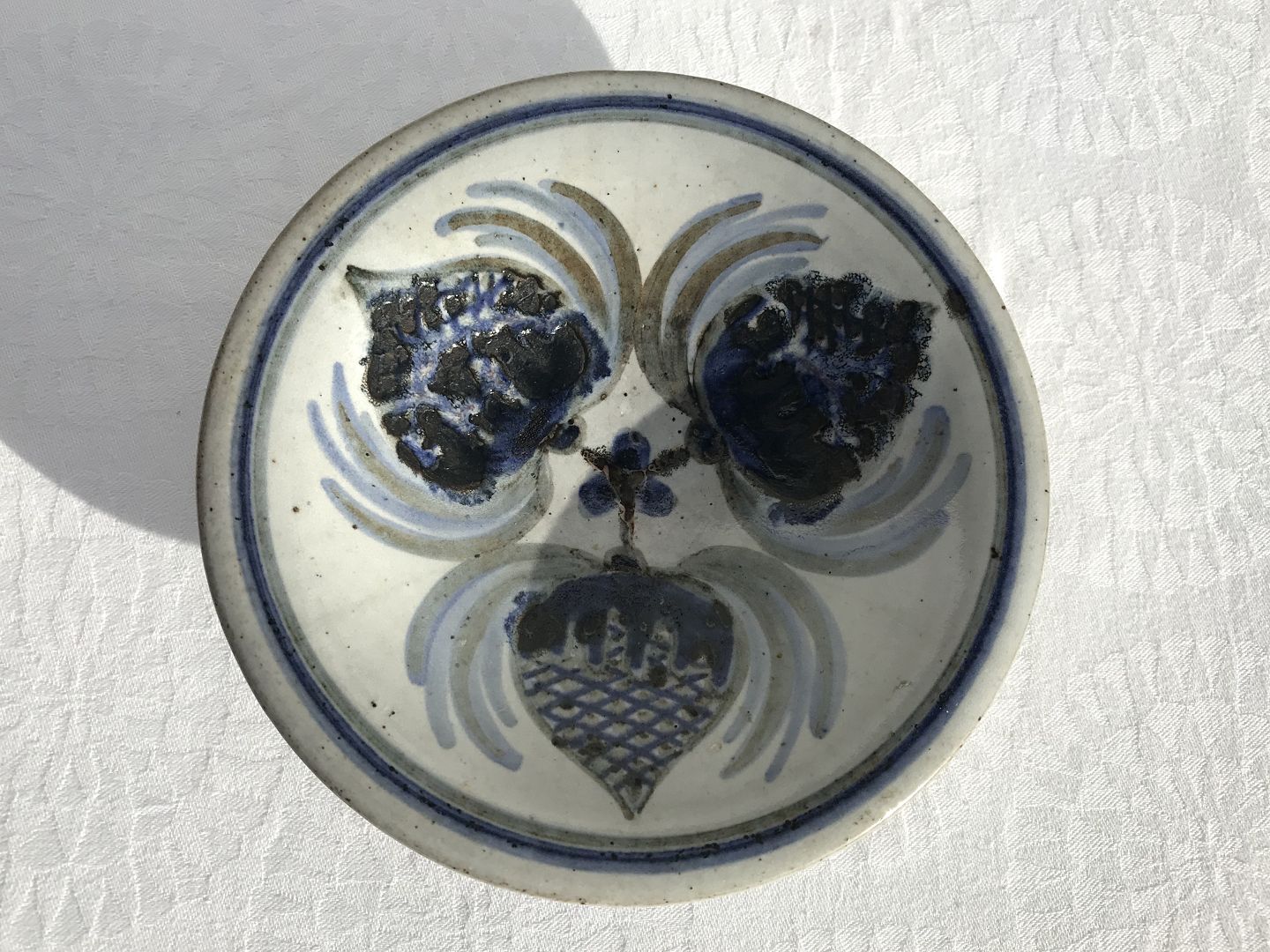 Bornholmsk keramik, Hjorth, Fad med koglemotiv, 15,5cm i diameter, 3,5cm høj, Stemplet z56 *Pæn stand*