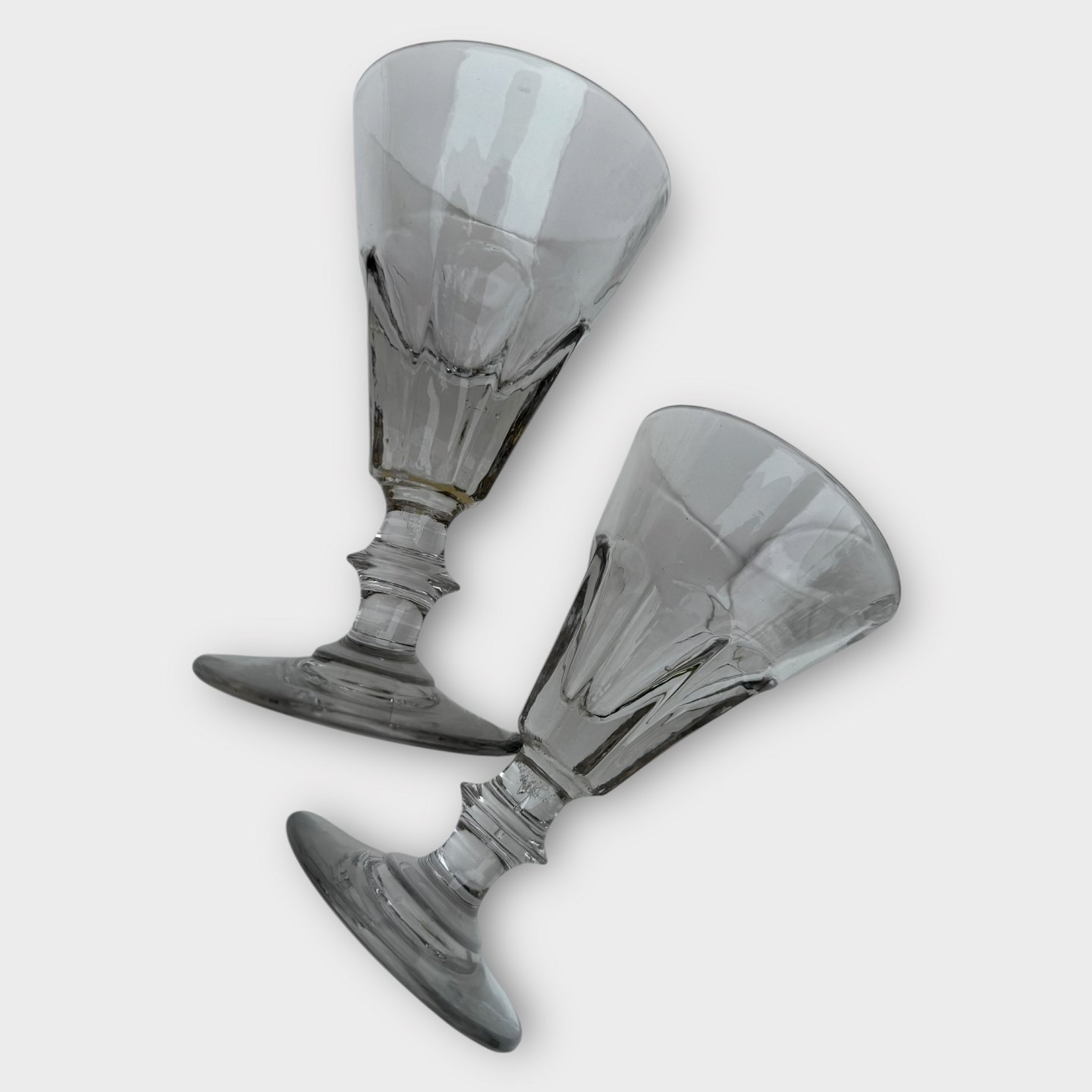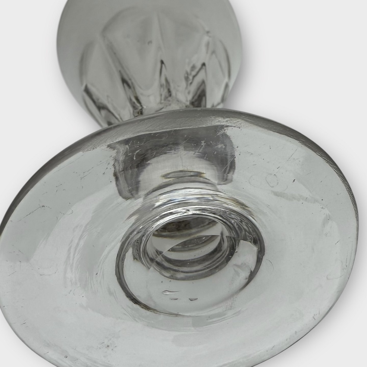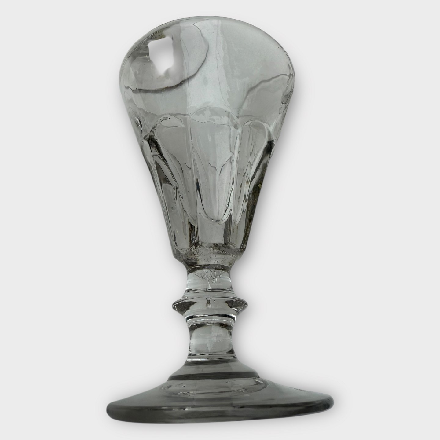 Older mold-blown glass with a ball-ground bottom. Probably French. Height approx. 13.5cm, diameter 8cm