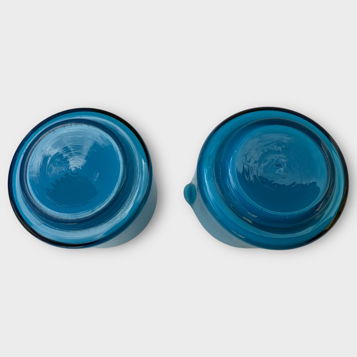 Holmegaard, palet, blue sugar and cream set, height 6.5cm, diameter 6.5cm, The sugar bowl has a small unevenness on the edge - not a chip (see photo) otherwise in good condition.