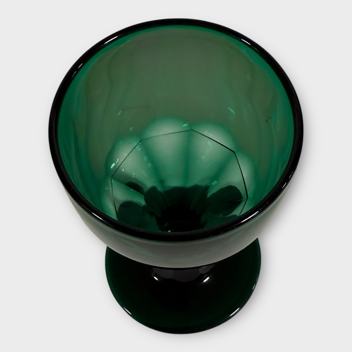 Older green glass with faceted stem and ball-cut bottom, height 11.5cm, nice condition