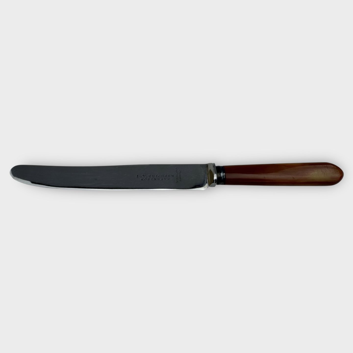 L. V. Erichsen, Copenhagen, knives with brown plastic handles and blades in Stainless Sheffield (stainless steel), length 25cm, good used condition